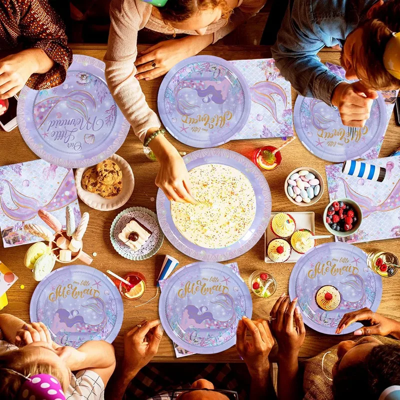 Comprar Vajilla de sirena para decoración de fiesta, platos de papel bajo el mar, suministros para cumpleaños, boda, Baby Shower