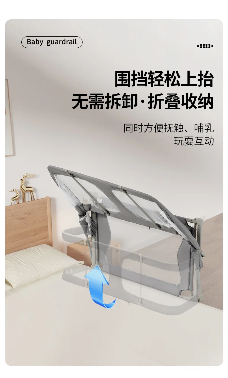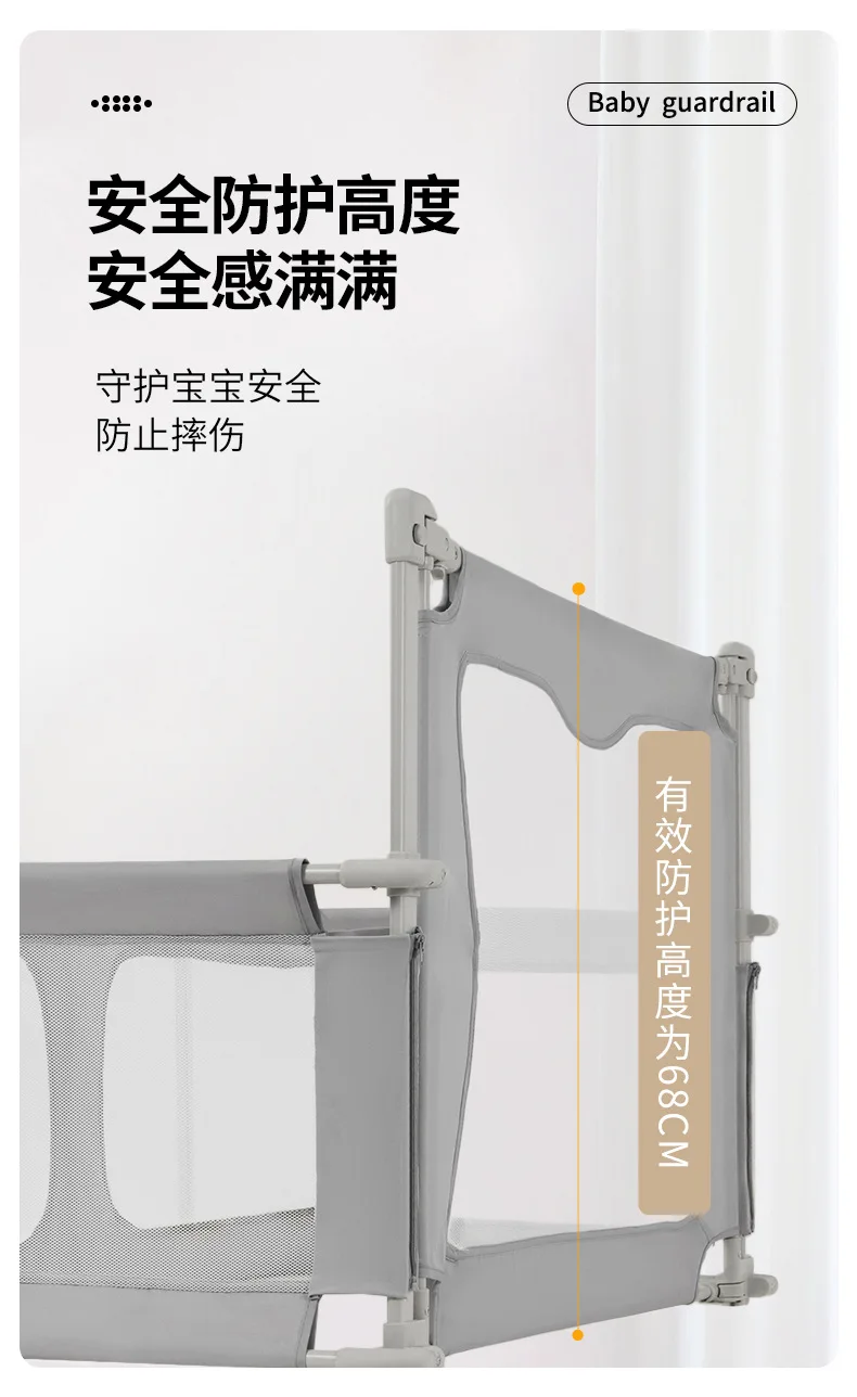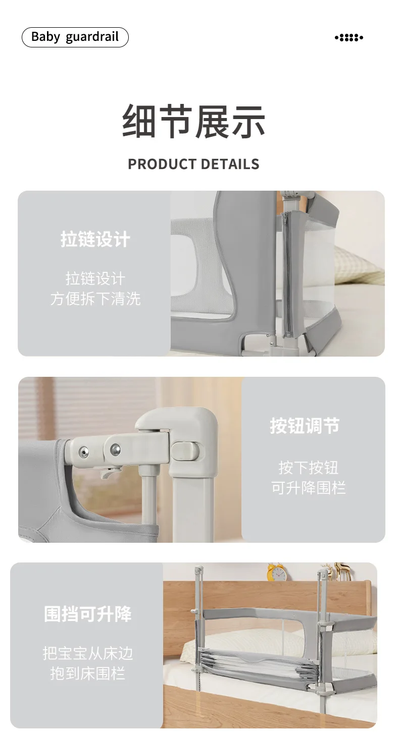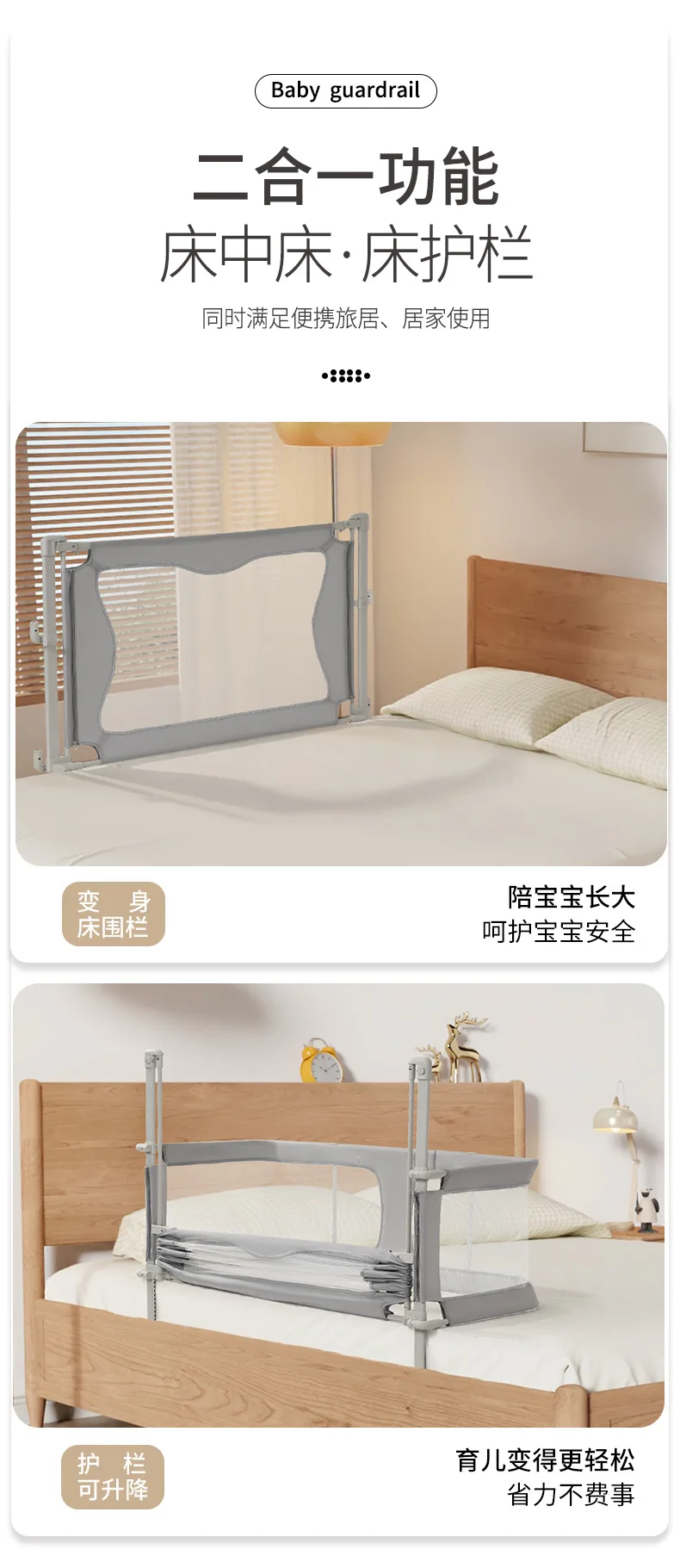 Valla para cama de cuna de bebé, valla protectora antipresión, valla protectora para bebé recién nacido, plegable y móvil con un clic