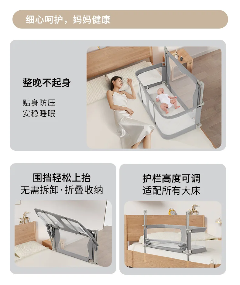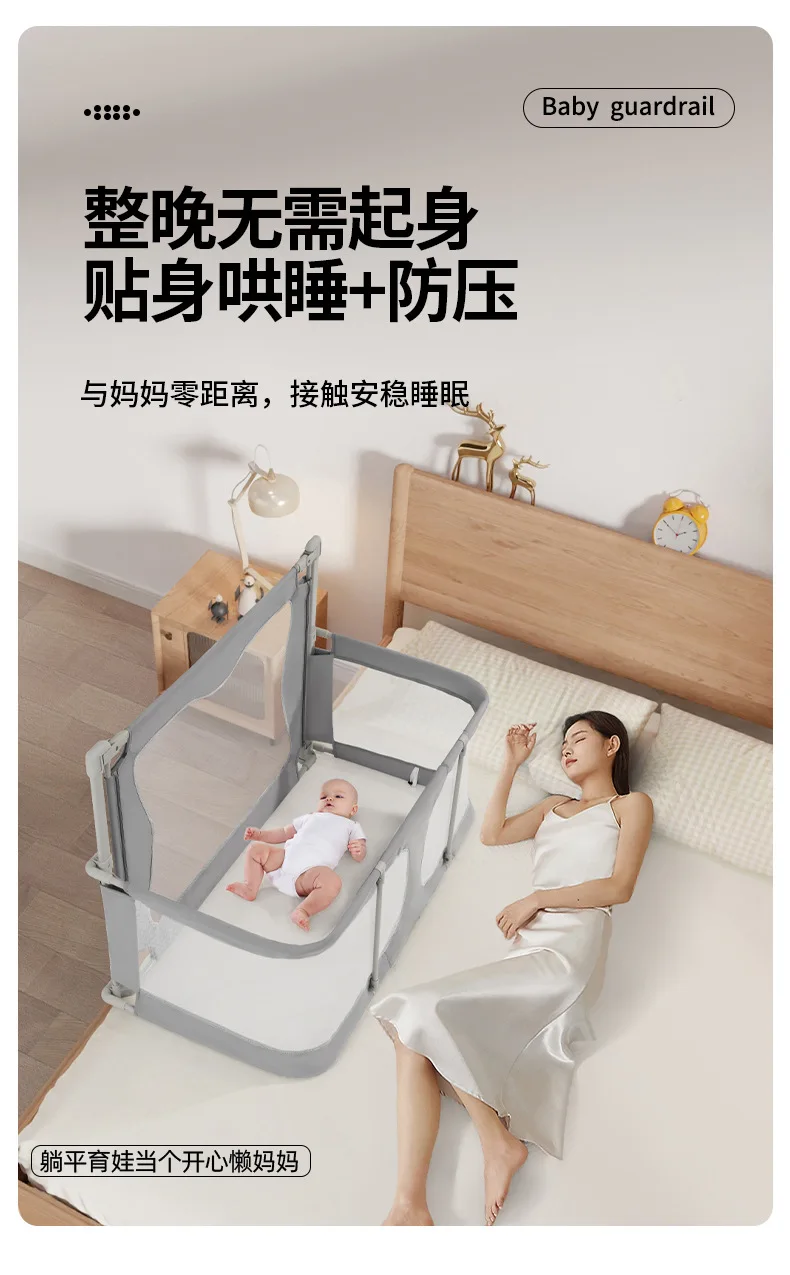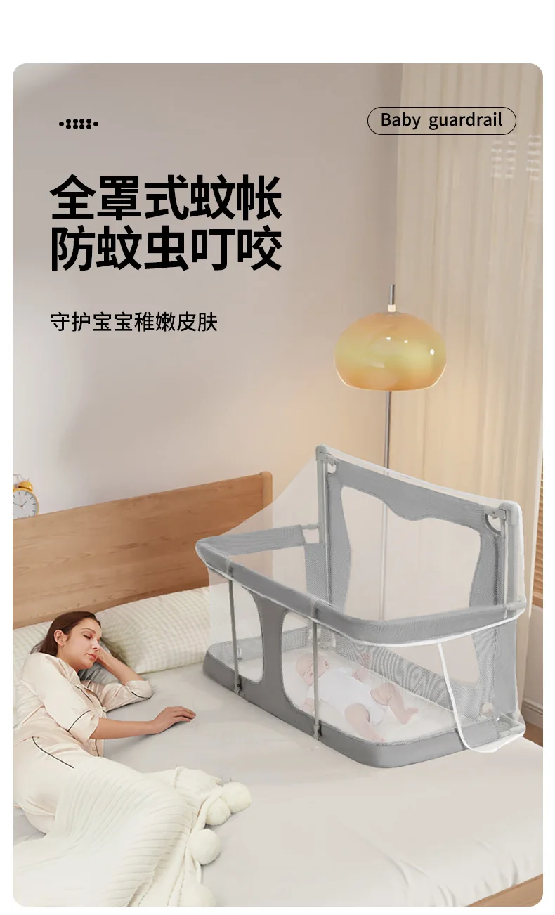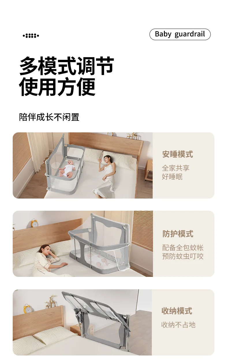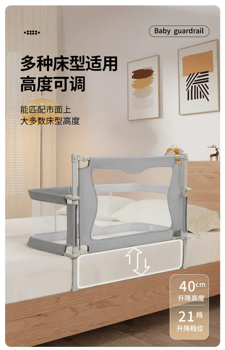 Valla para cama de cuna de bebé, valla protectora antipresión, valla protectora para bebé recién nacido, plegable y móvil con un clic
