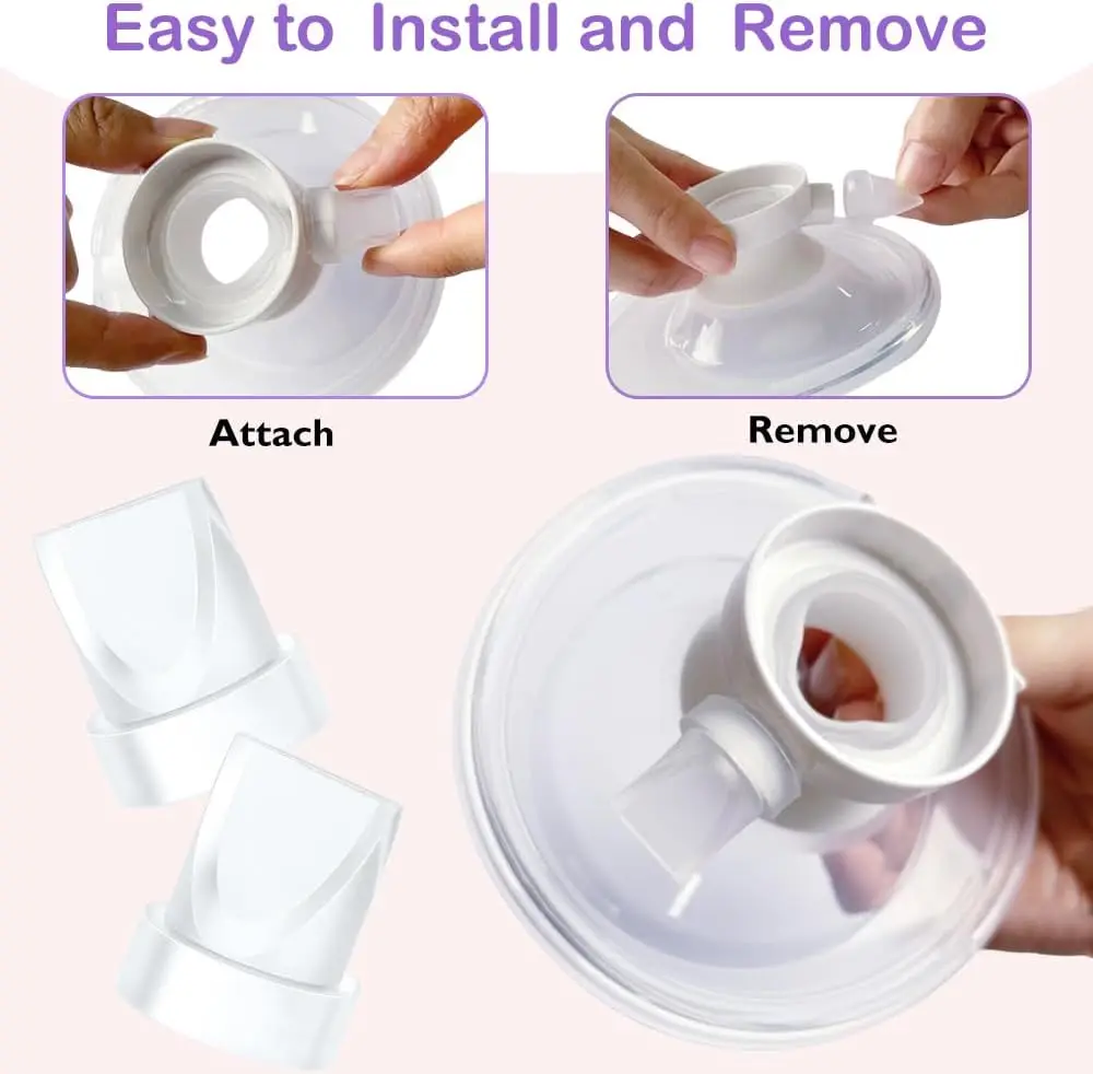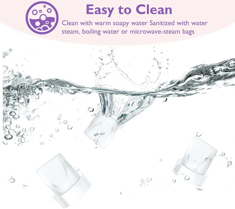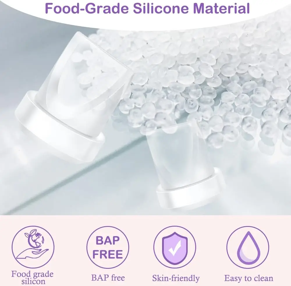 Material de silicona de calidad alimentaria: los accesorios de repuesto del extractor de leche M5 están hechos de silicona de calidad alimentaria, duradero, sin fugas, sin BPA, suave e inodoro, agradable para la piel de mamá y bebé. Material suave y cómodo, ajuste cómodo que puede un bombeo cómodo y eficiente.