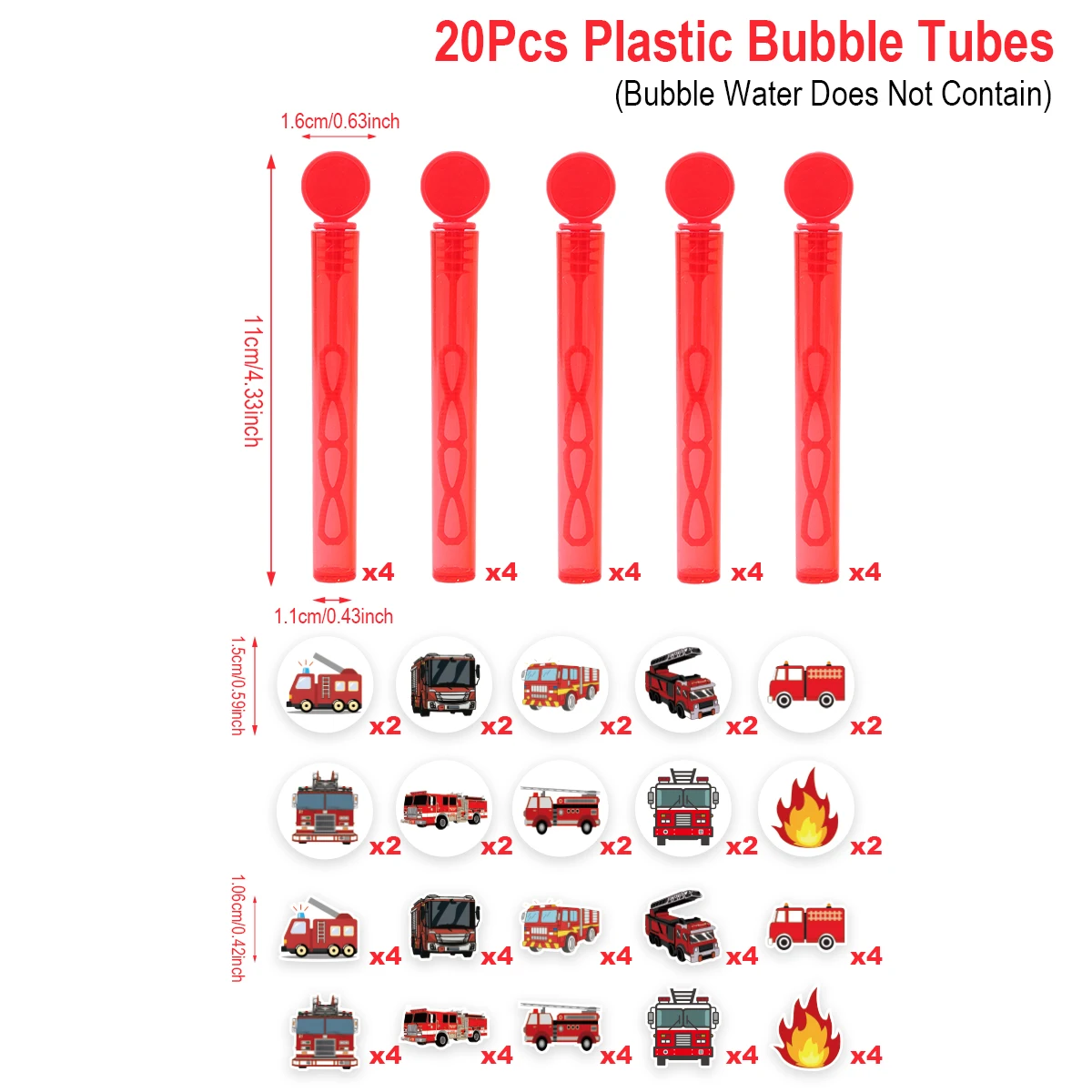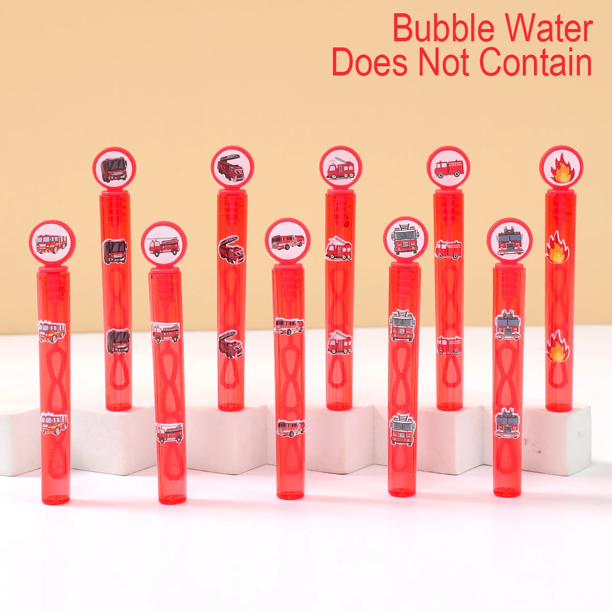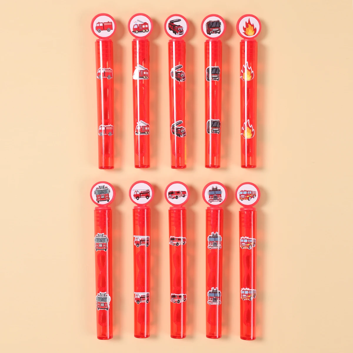 El diseño del camión de bomberos rojo hace que estas varitas de burbujas no solo sean funcionales sino también una elegante decoración para fiestas.