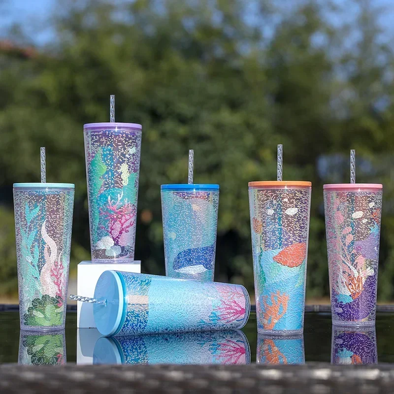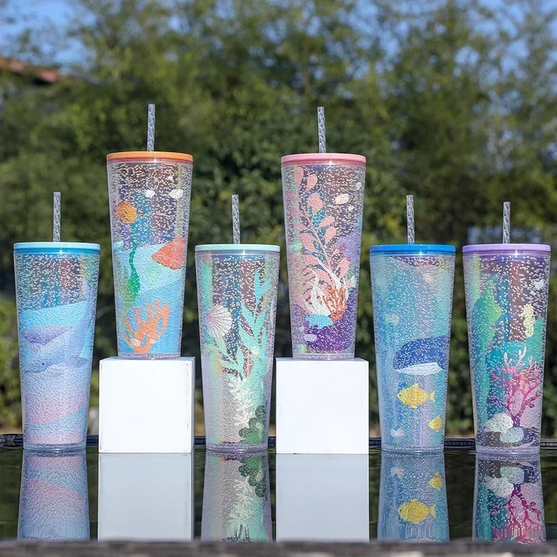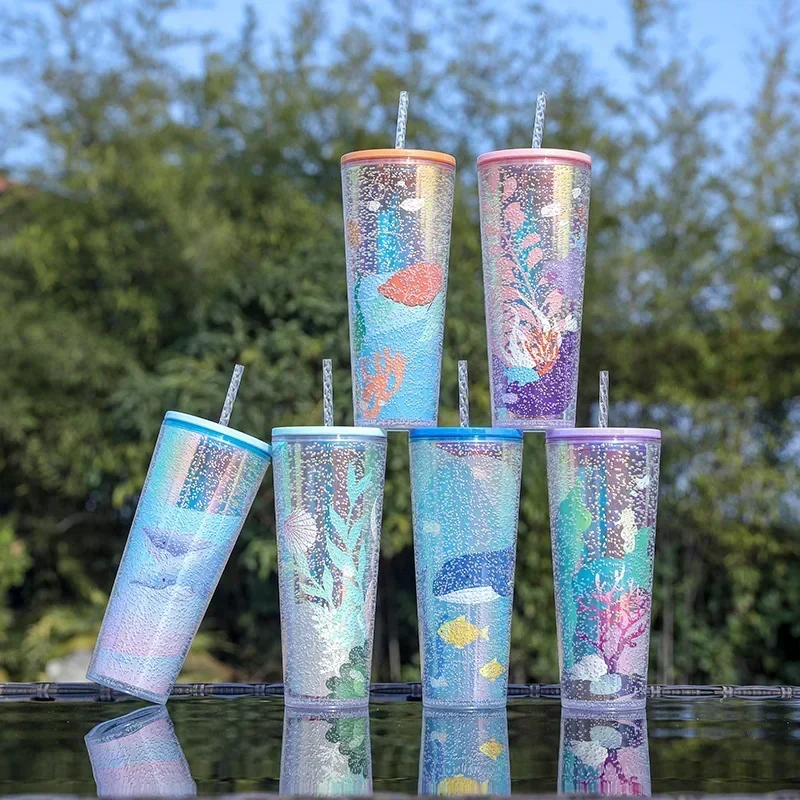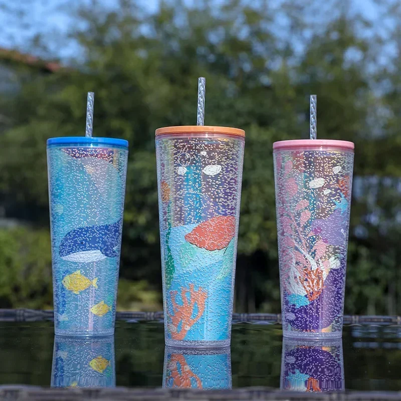 - Vasos de agua Bubble Starbus, vasos de plástico portátiles, vasos de paja de doble capa de gran capacidad