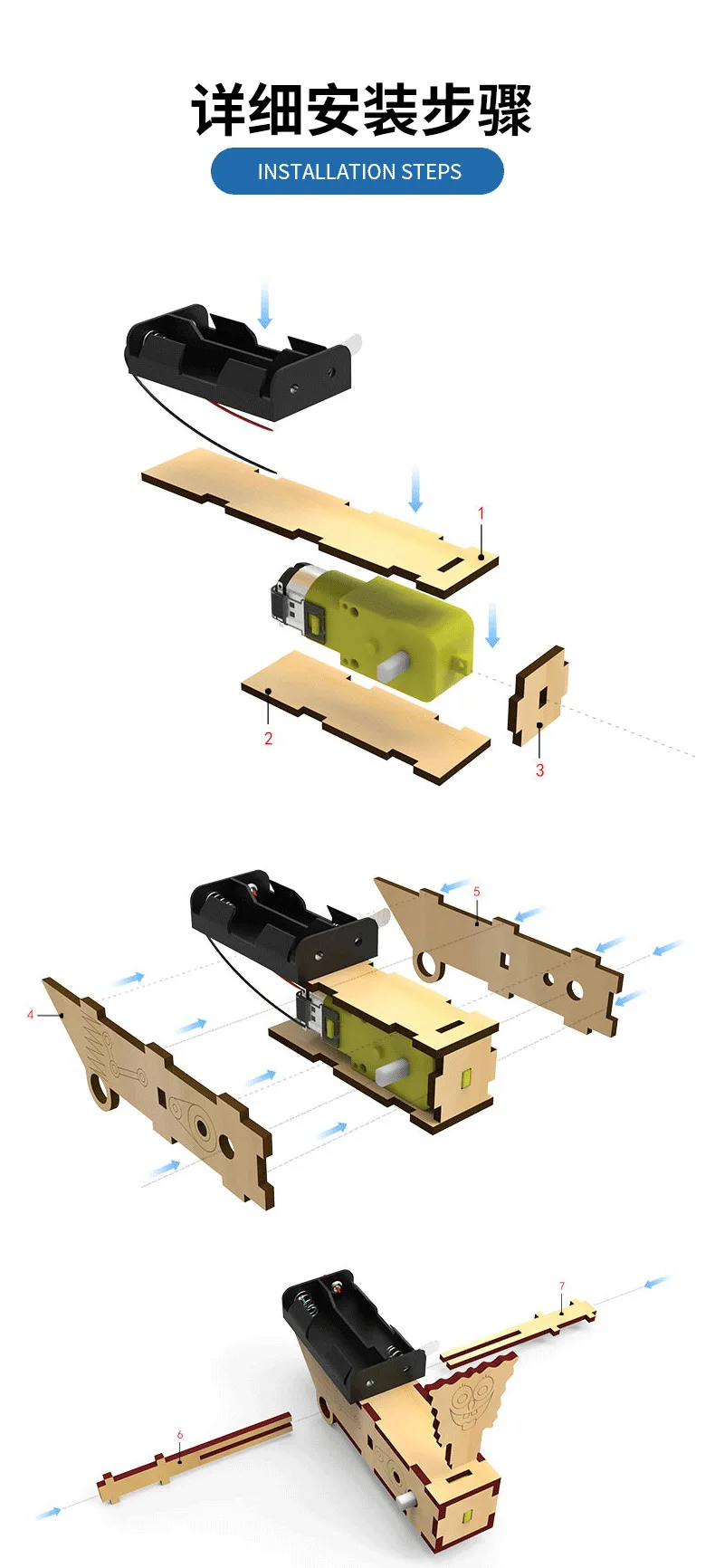 Nombre del producto: oruga eléctrica Método de embalaje: bolsa esmerilada sellada CPE (con instrucciones adjuntas) Material del producto: madera, plástico Tamaño del embalaje del producto: 22*14,5*0,3 CM Tamaño del producto terminado: 8*12*7CM Peso del tablero de madera del producto: 43,6G Peso del accesorio del producto: 38,6G Uso: consulte el manual (manual electrónico adjunto para una fácil proyección). Estándar Ejecutivo: Nivel de dificultad:★★★☆☆
