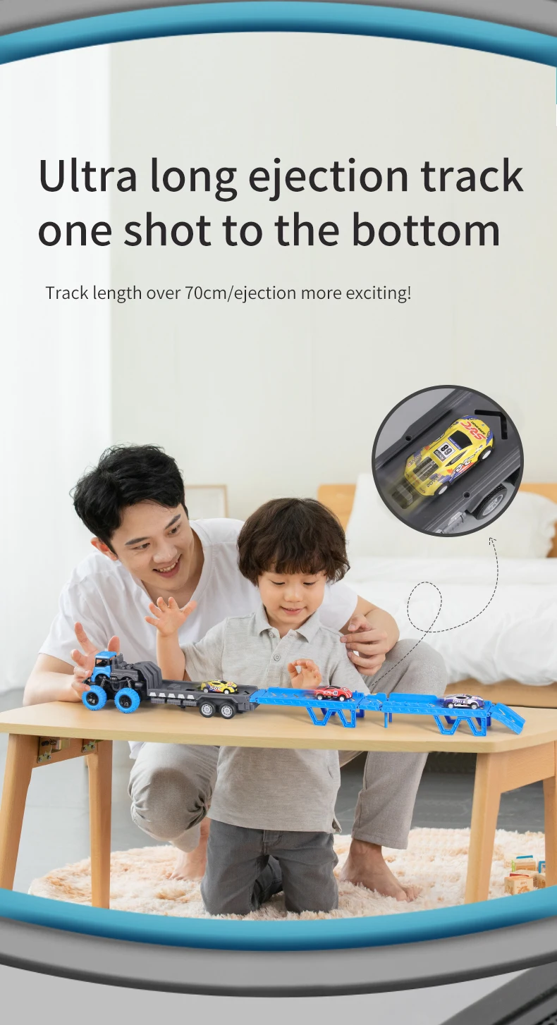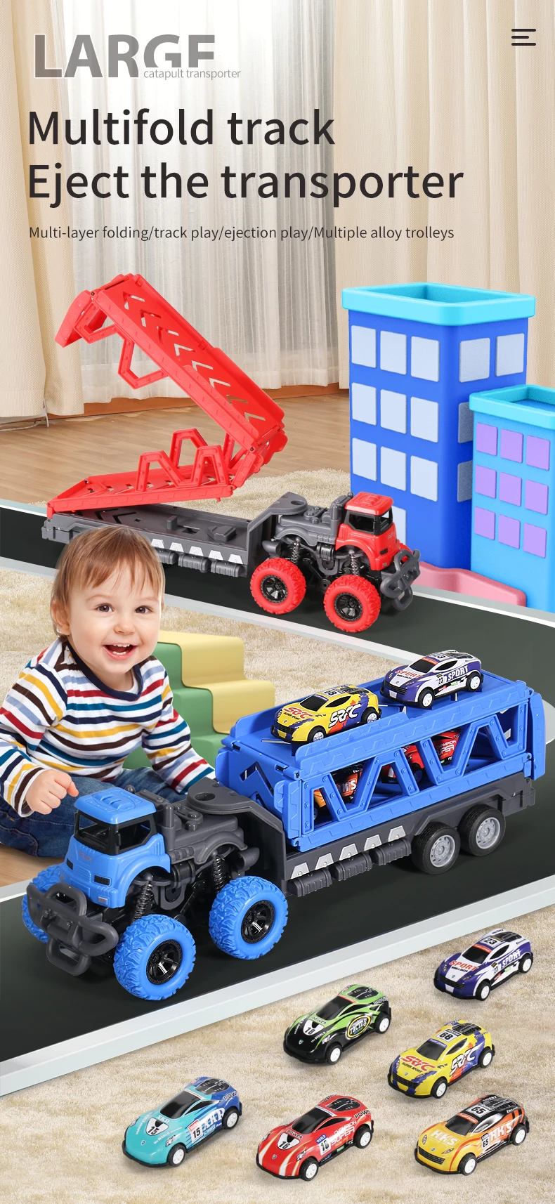 Vehículo de pista de eyección, camión contenedor, camión plegable de pista de juguete, vehículo de almacenamiento. Navidad, Acción de Gracias, Halloween. Niños