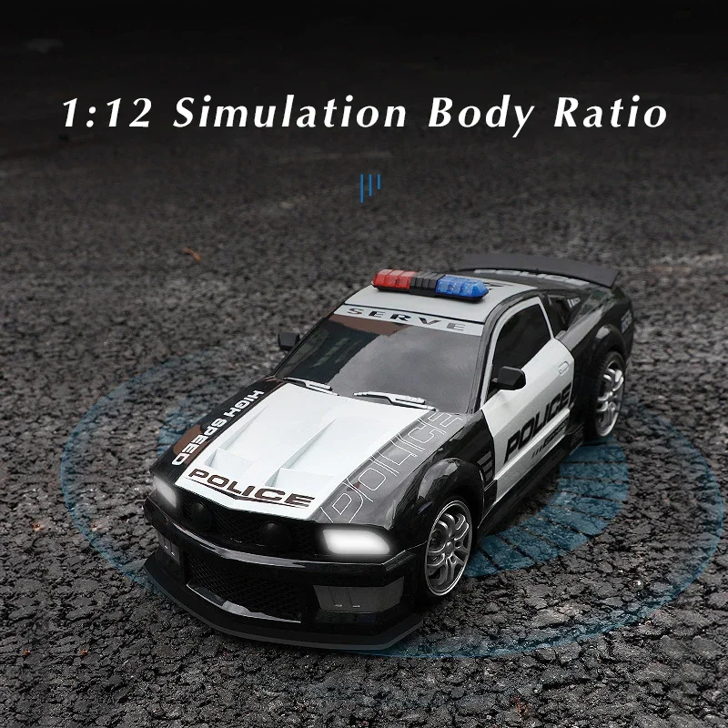 Comprar Vehículo de policía a control remoto para niños, coches de juguete con luces duraderas, vehículo eléctrico de deriva, juguetes para niños, regalo, 1/12