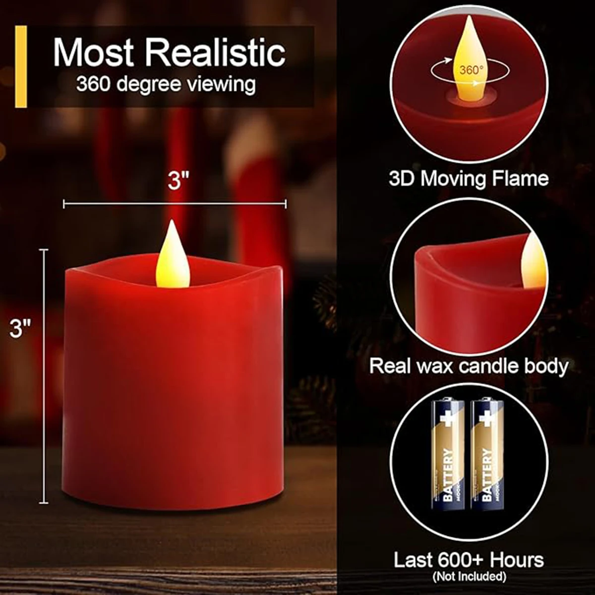 【Decoración navideña】Las velas sin llama 3x3 se pueden utilizar ampliamente para cumpleaños, decoración del hogar, bares, hoteles, fiestas, vacaciones, bodas y otras ocasiones. Con las velas pilares podrás pasar la hermosa noche en un ambiente tranquilo.