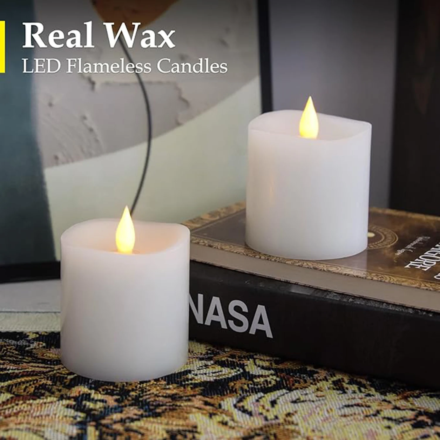 【Como una vela real】El cuerpo de las velas sin llama de 3 pulgadas está hecho de cera real, las velas con batería parpadean con el temporizador, el cabezal de la llama está hecho de silicona suave, estas velas sin llama son tan realistas que casi indistinguibles de las velas encendidas tradicionales.