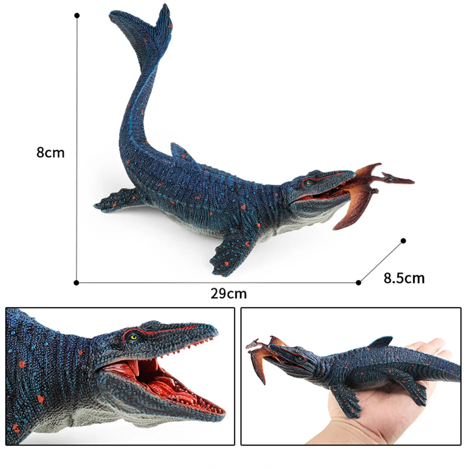 【Material duradero】El juguete de figuras de dinosaurio de simulación está hecho de material de alta calidad, borde liso, la boca puede morder, los brazos se pueden girar.