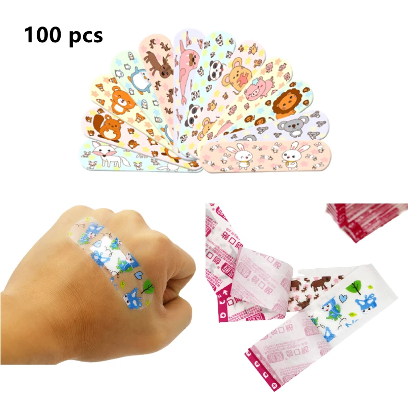 Quantity : 100 pcs×bandaidsFeatures : Cute cartoon, transparent and waterproof, mostly used for small wounds, one-time use.