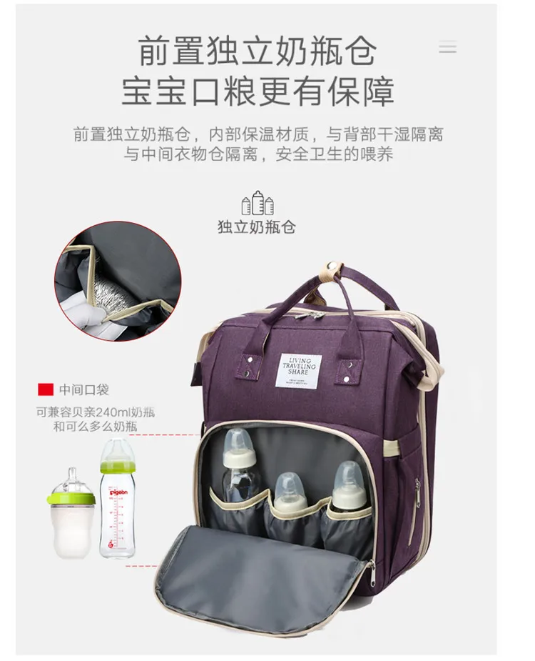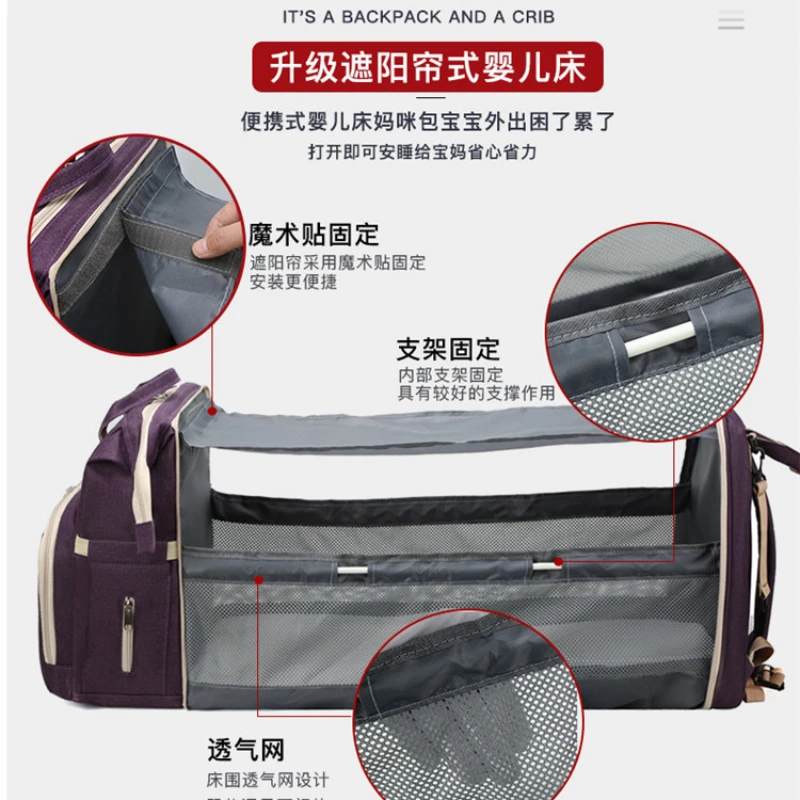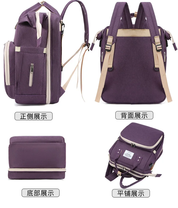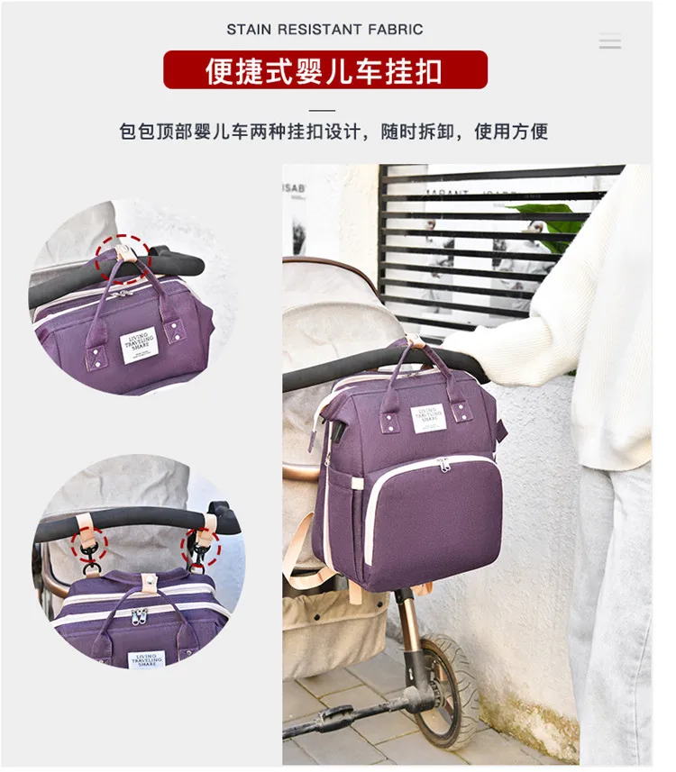 Venta al por mayor, bolsas multifuncionales para mamás, bolsas USB de gran capacidad para madres y bebés, bolsas plegables para bebés, bolsas para madres