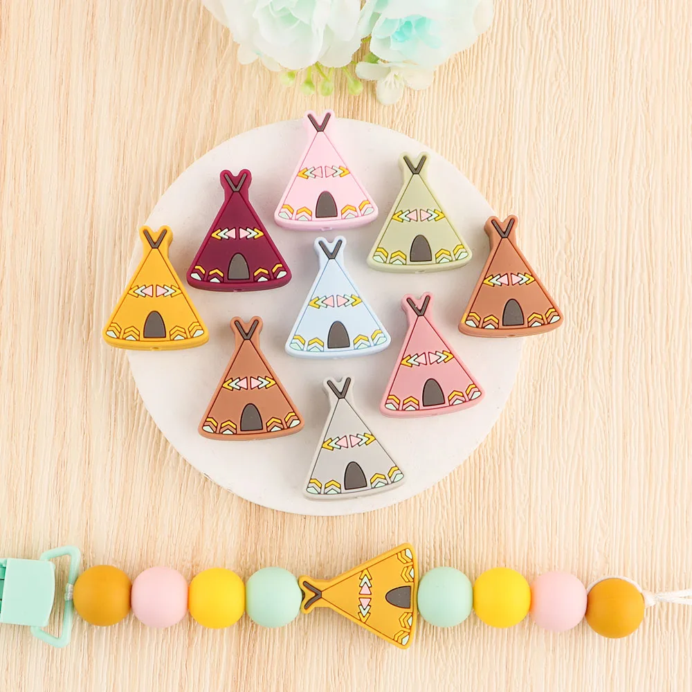 Venta caliente tienda de campaña de dibujos animados colgante de silicona tienda cuentas de silicona para joyería DIY collar colgante Etc accesorios hechos a mano
