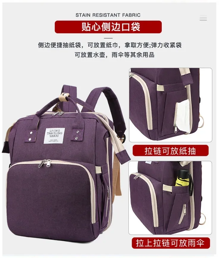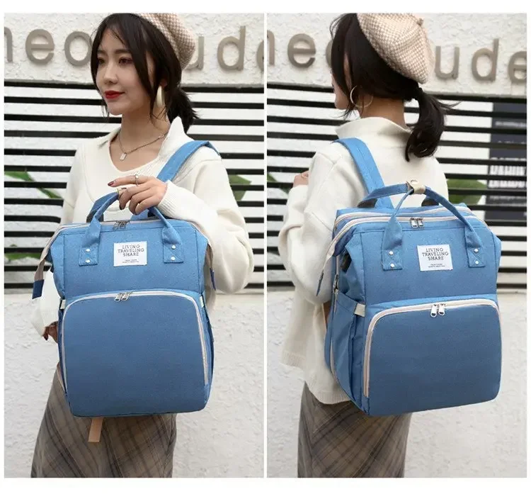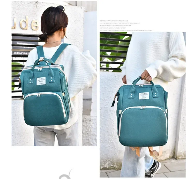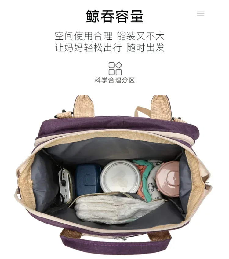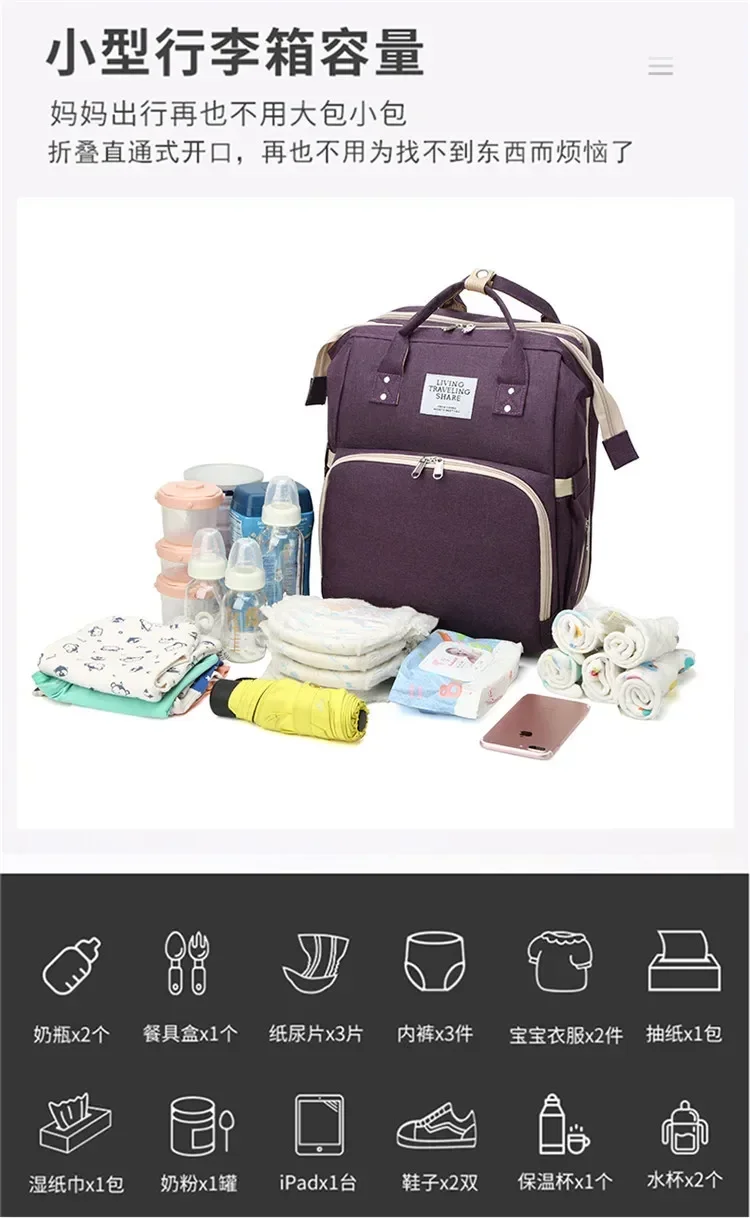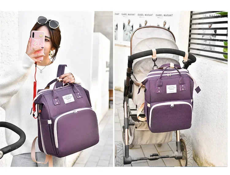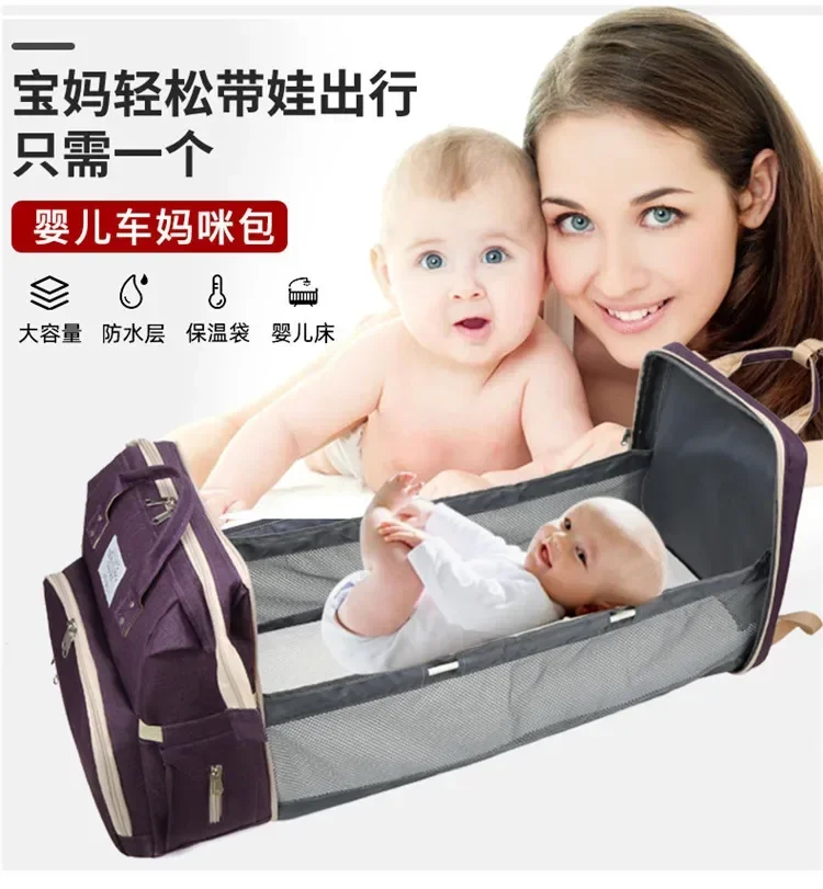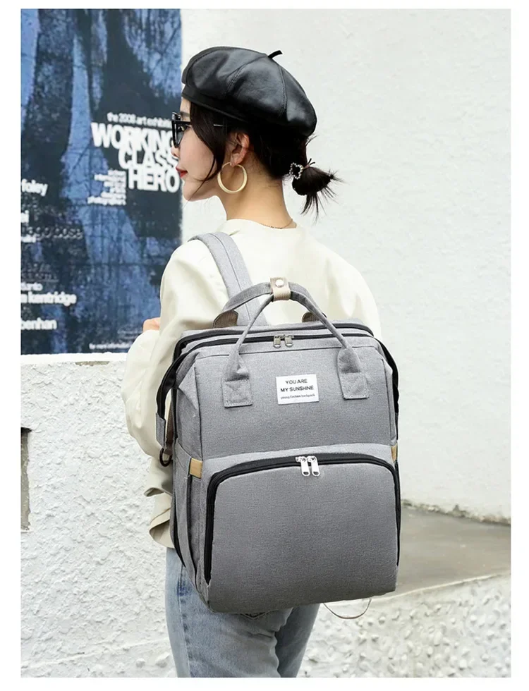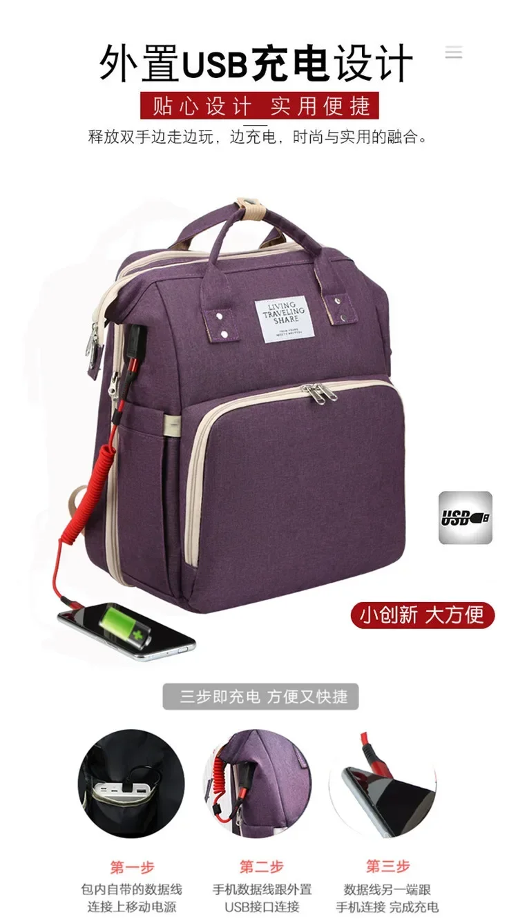 Venta al por mayor, bolsas multifuncionales para mamás, bolsas USB de gran capacidad para madres y bebés, bolsas plegables para madres y bebés