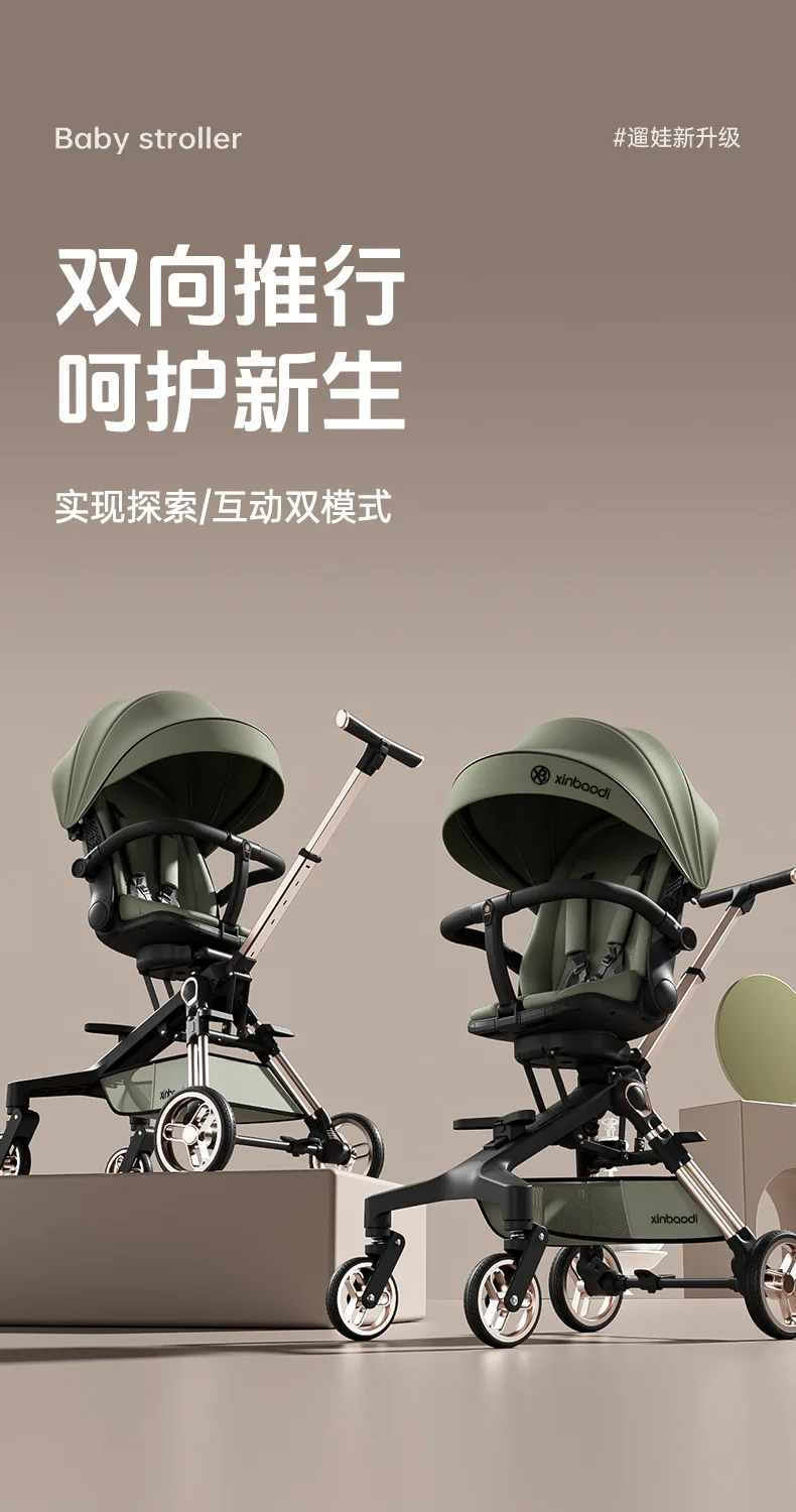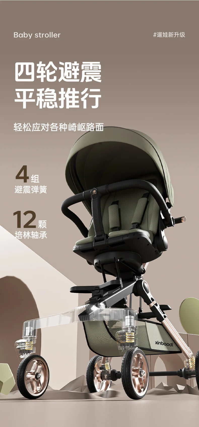Venta al por mayor cochecito de bebé cochecito ligero paisaje alto sentarse y acostarse plegable con un clic