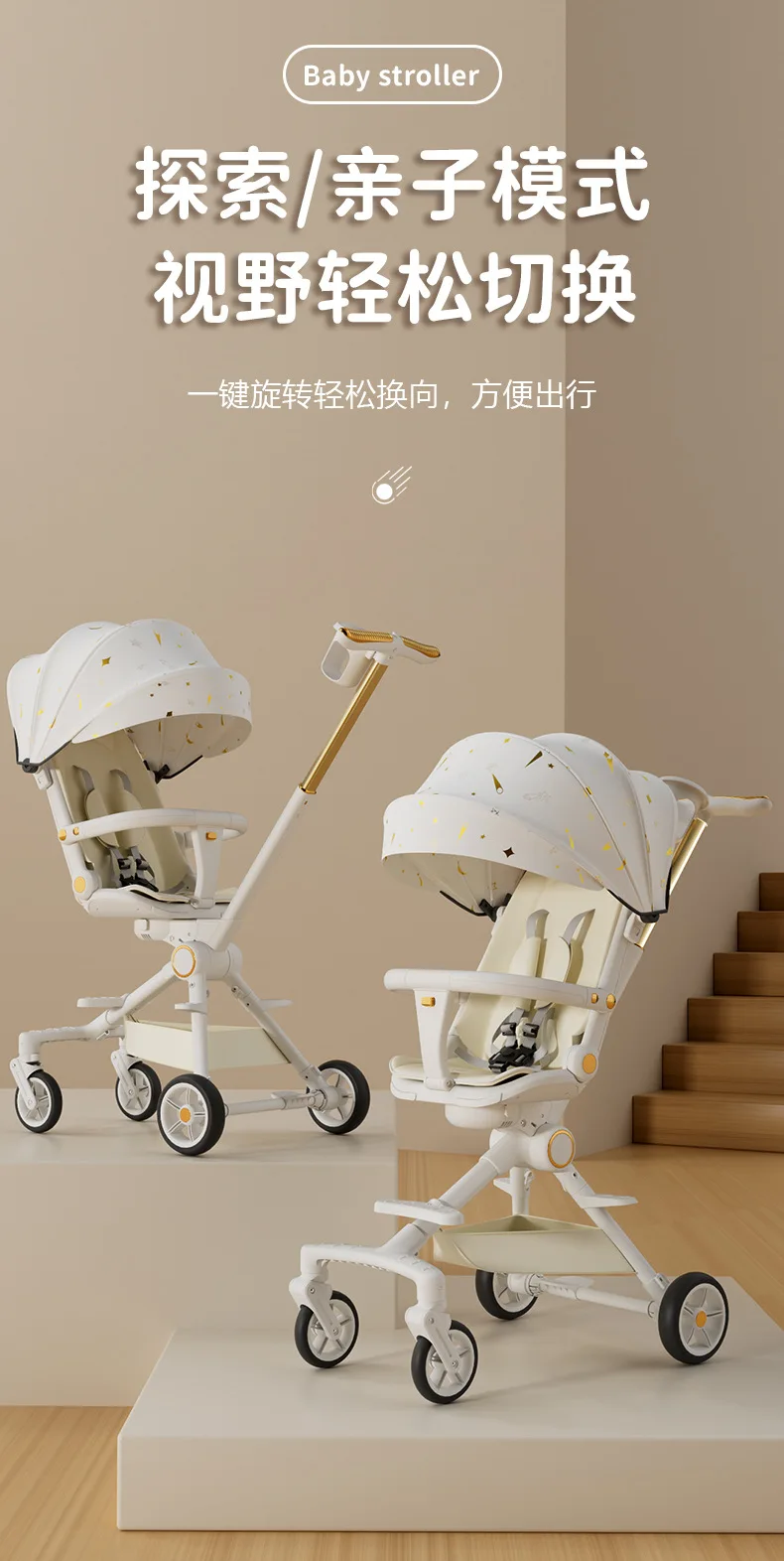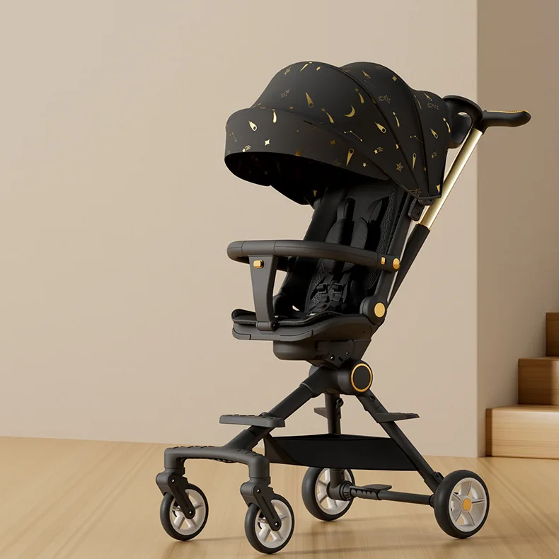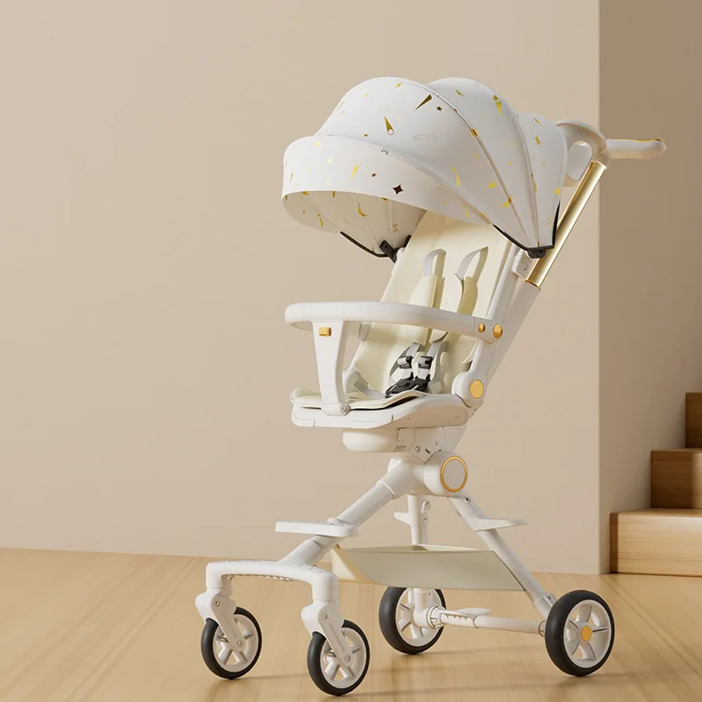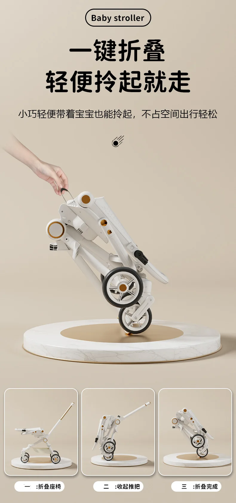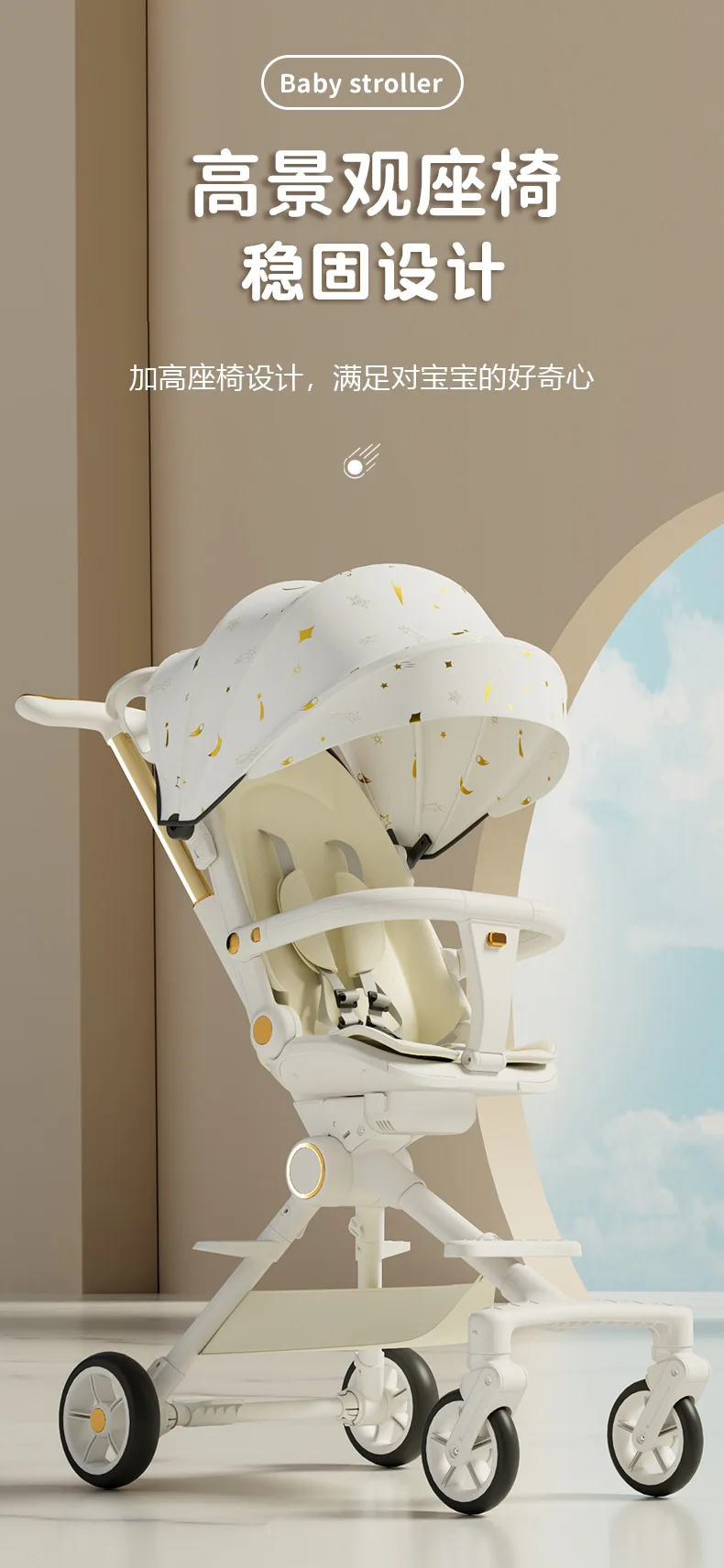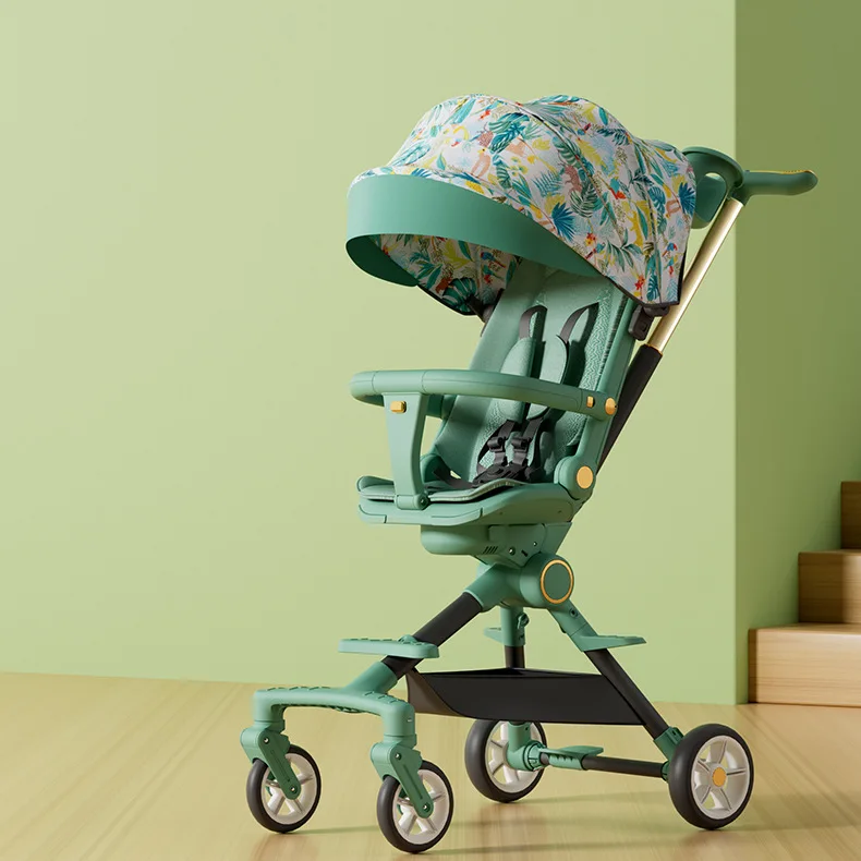 Venta al por mayor, cochecitos de bebé ligeros, carrito de mano que puede sentarse y tumbarse, cochecitos plegables portátiles, cuatro ruedas, ambas direcciones