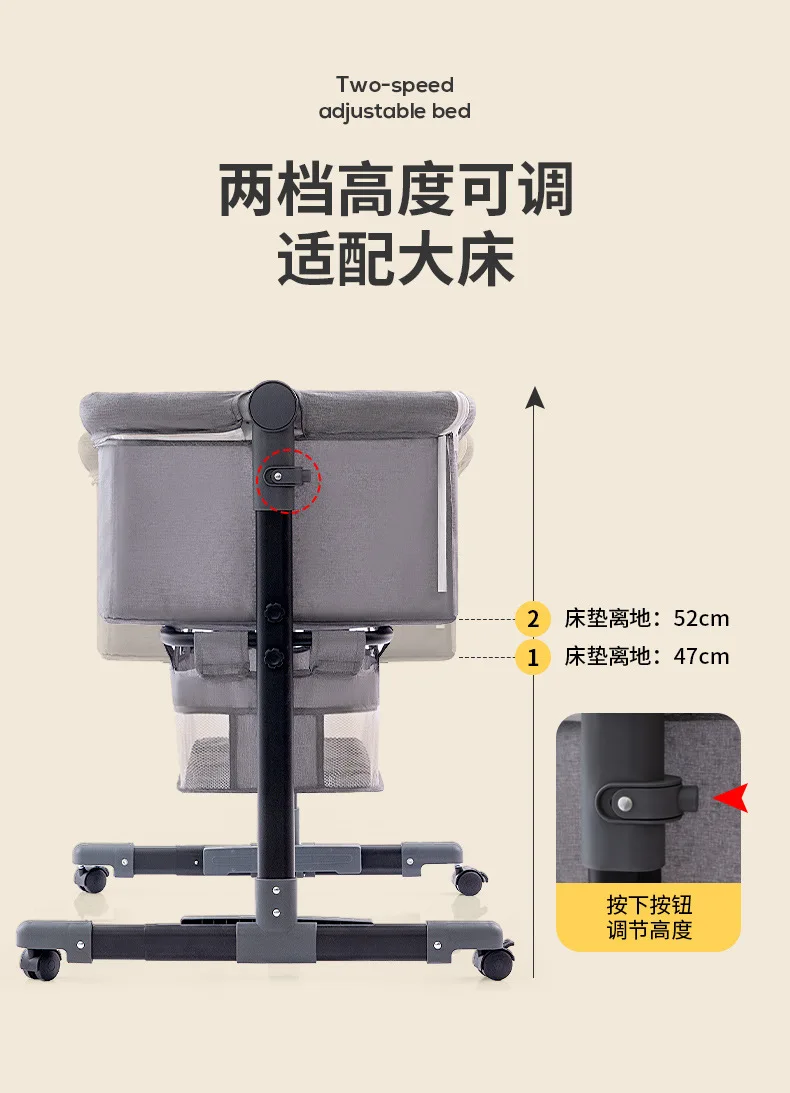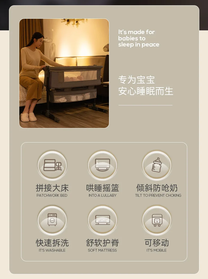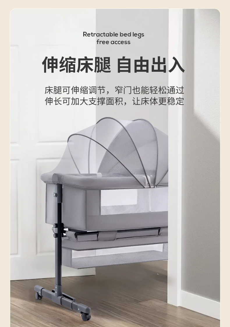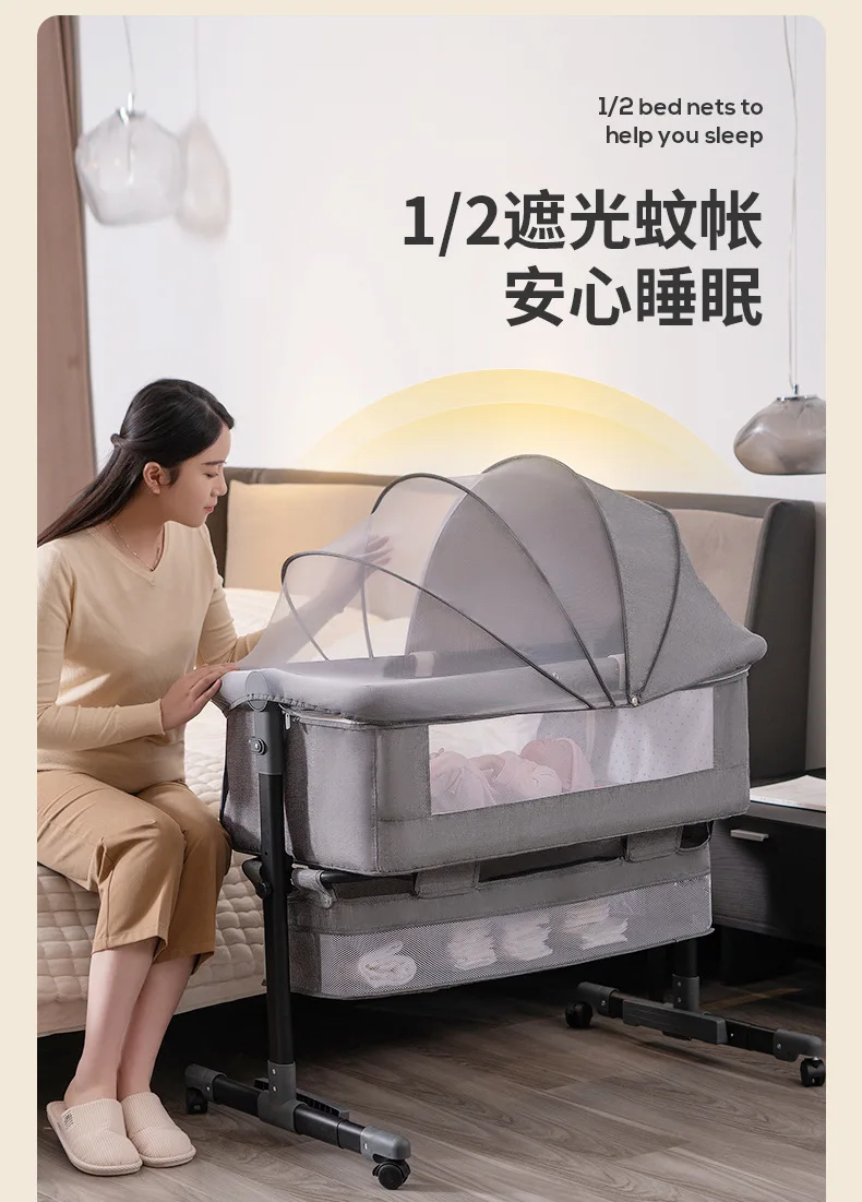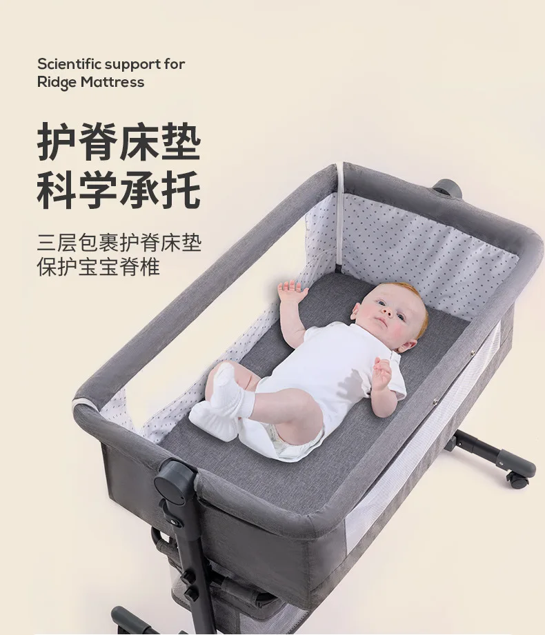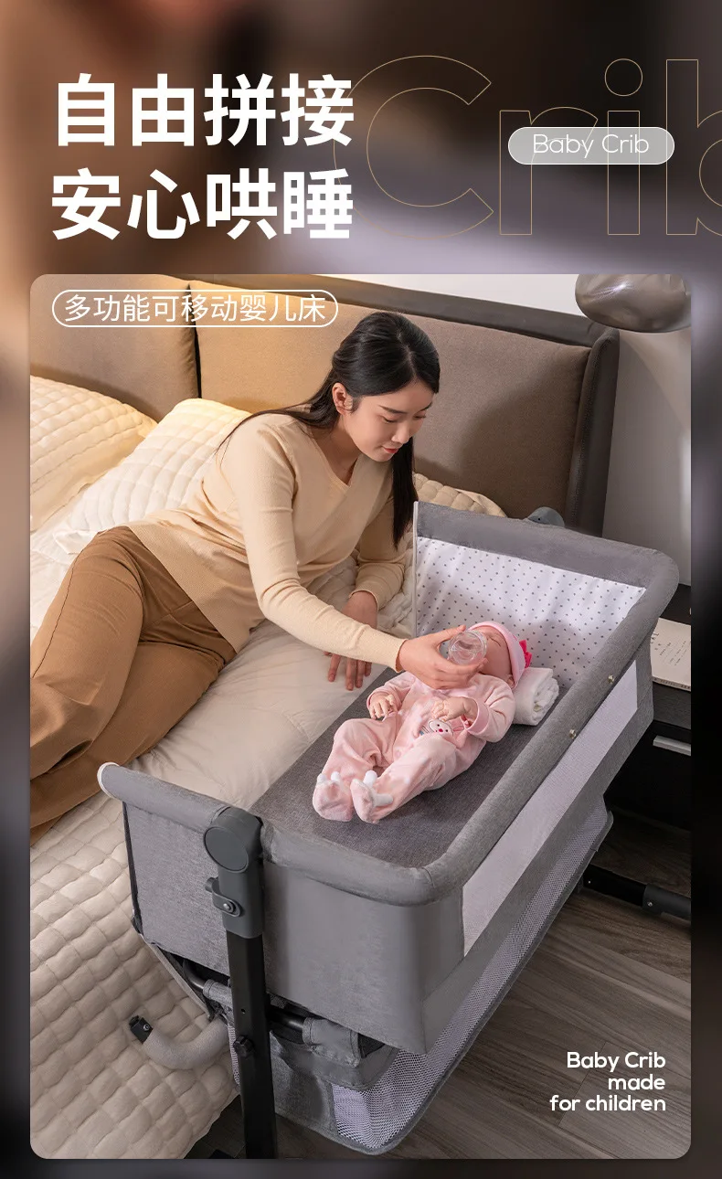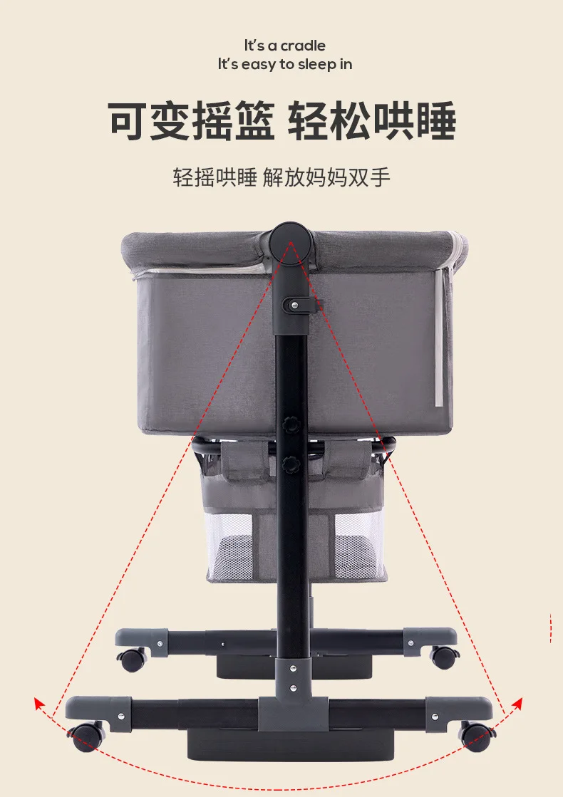 Venta al por mayor, cuna portátil para bebé, cama móvil plegable para niños, cama mecedora grande con empalme multifuncional para bebé