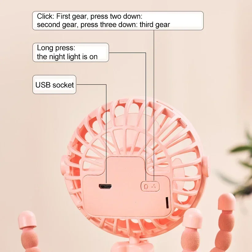 Comprar Ventilador oscilante portátil Personal para cochecito, miniventilador portátil para asiento de coche de bebé con trípode Flexible, funciona con batería USB con Clip