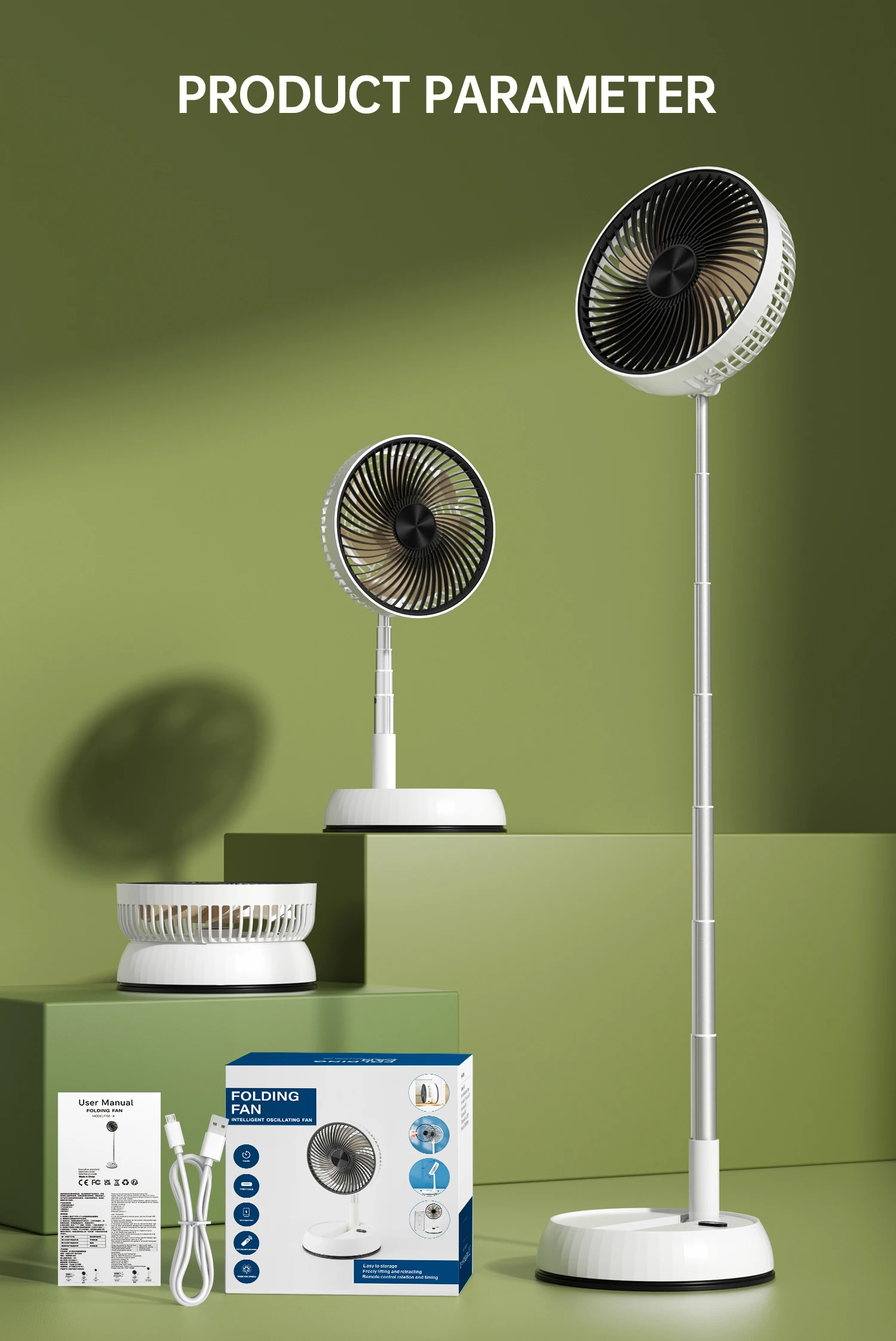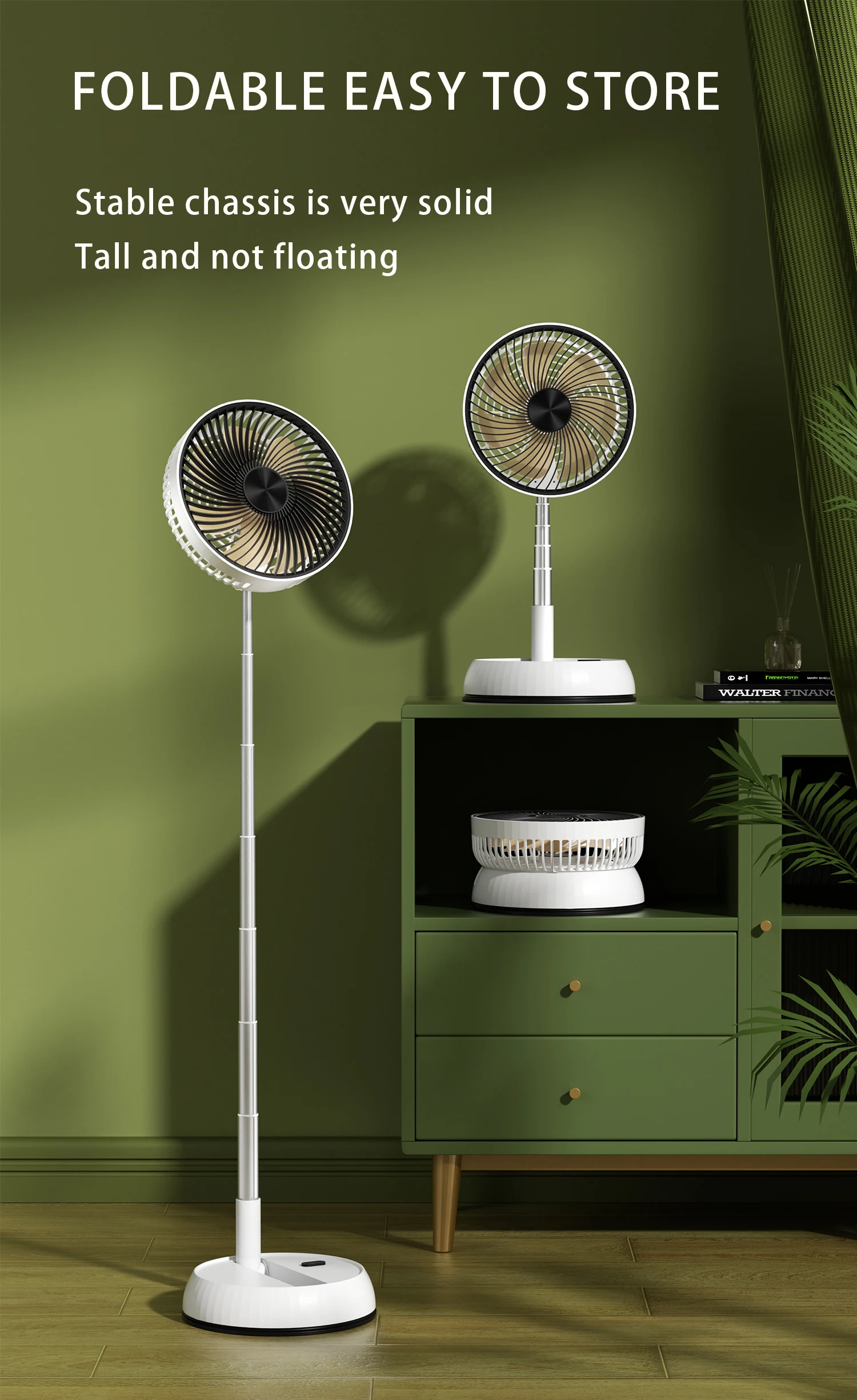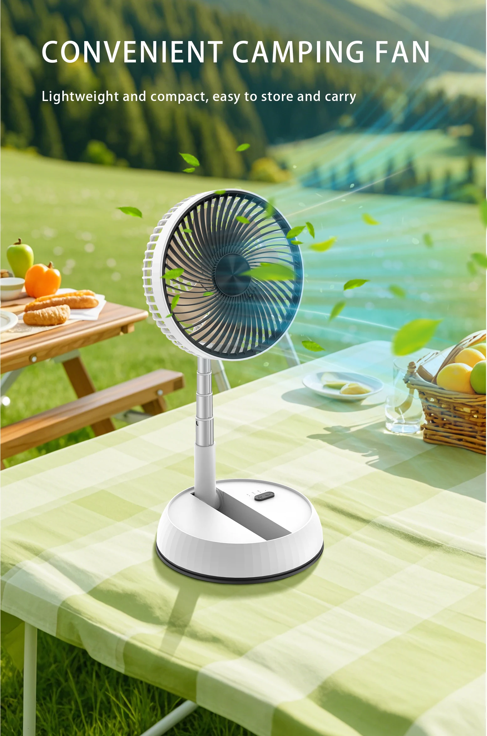 Ventilador vertical plegable retráctil con control remoto de 7200mAh, ventilador práctico para acampar al aire libre USB 180 ° +90 ° sacudiendo ventilador de escritorio de 8 pulgadas
