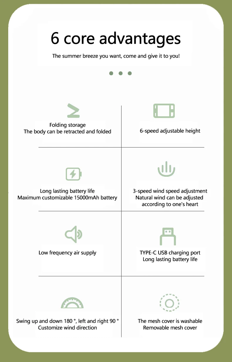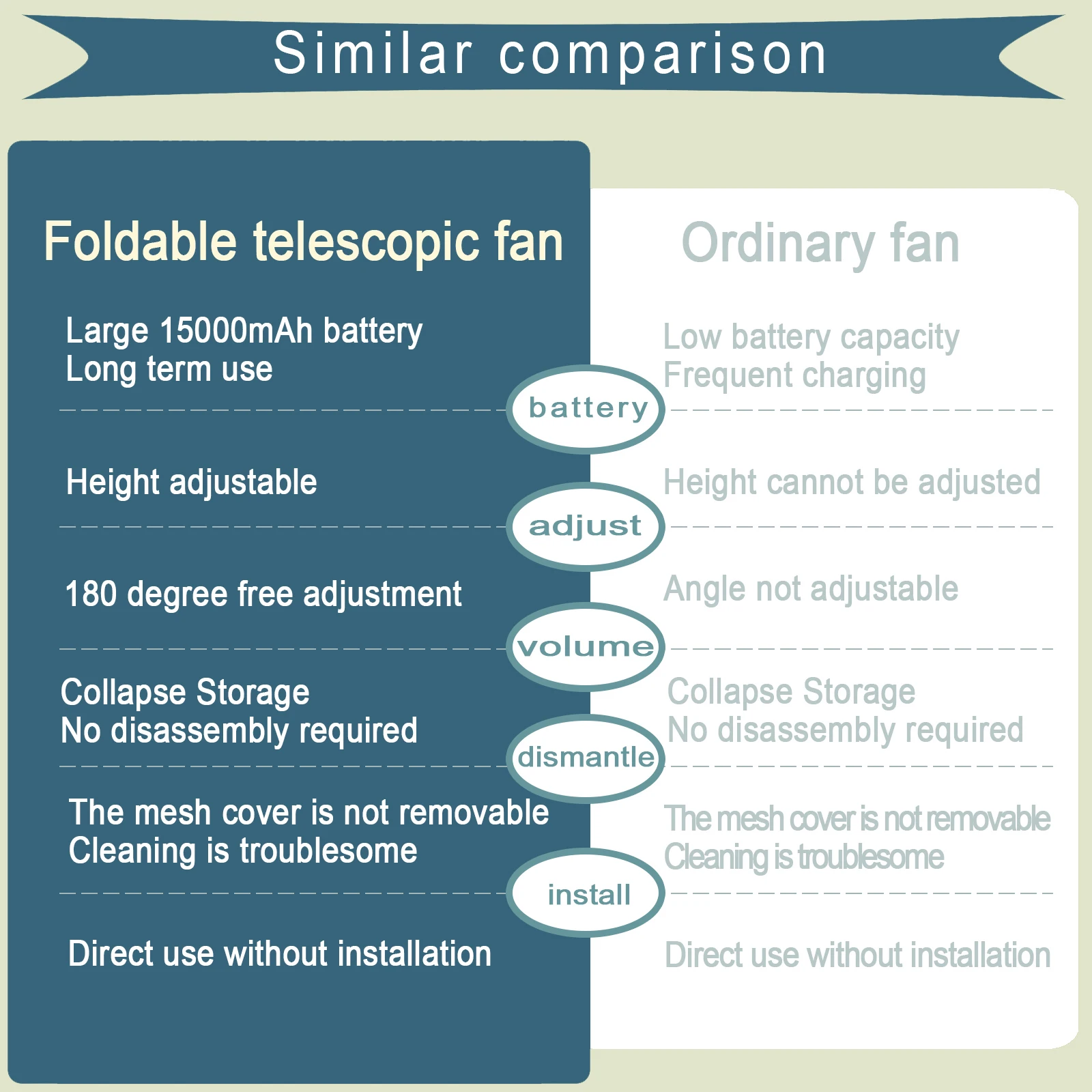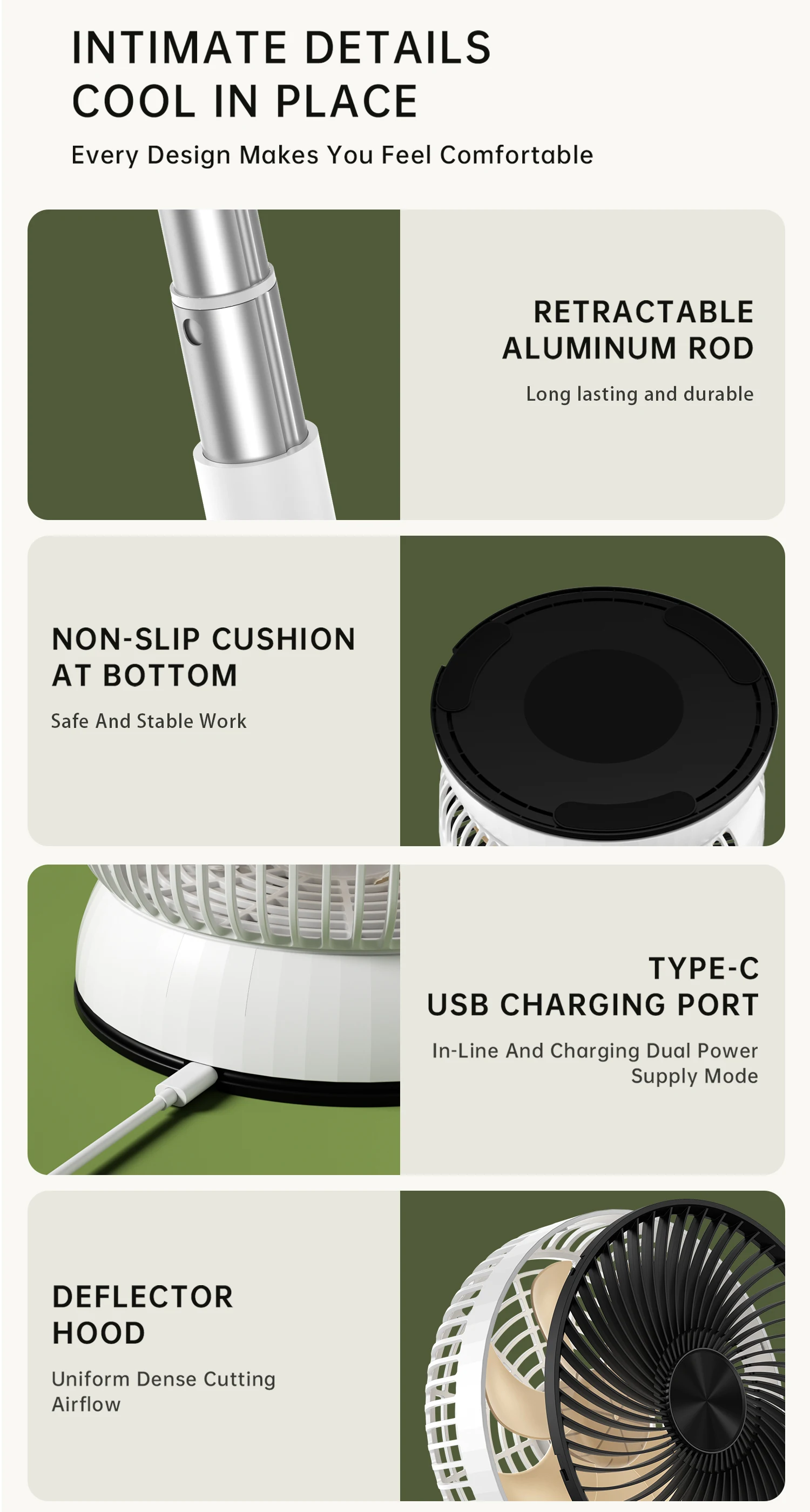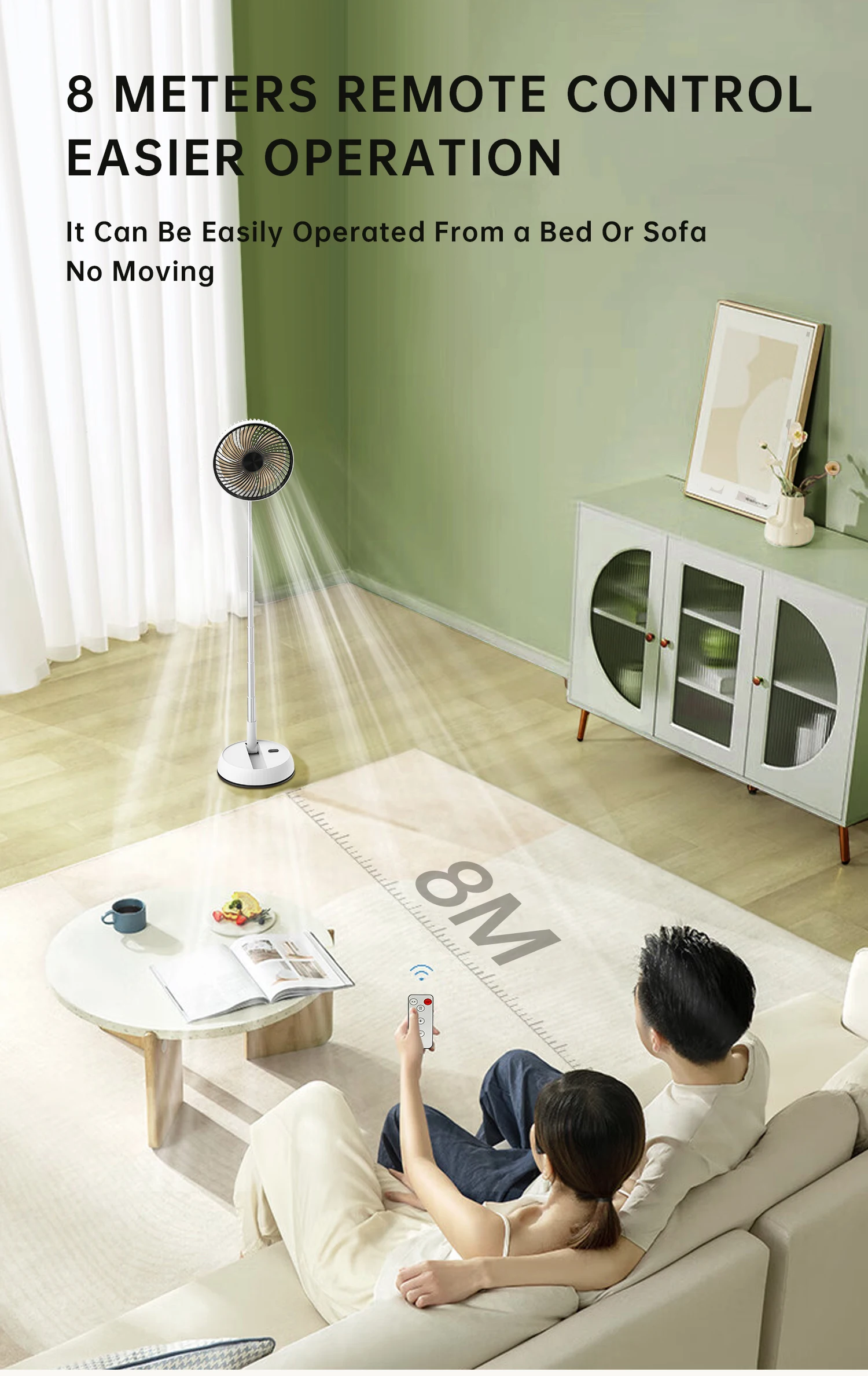 Ventilador vertical plegable retráctil con control remoto de 7200mAh, ventilador práctico para acampar al aire libre USB 180 ° +90 ° sacudiendo ventilador de escritorio de 8 pulgadas