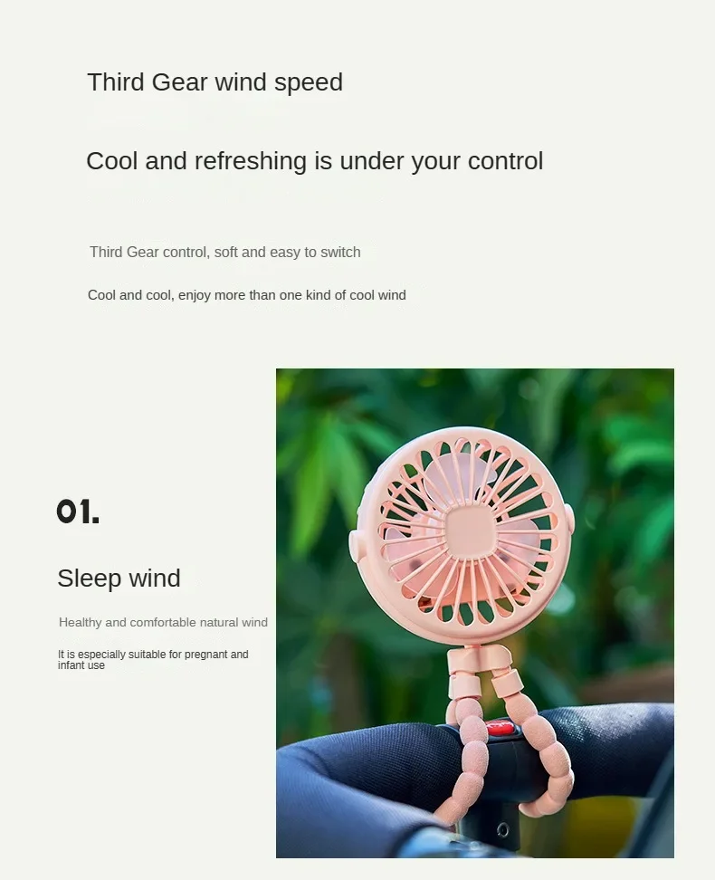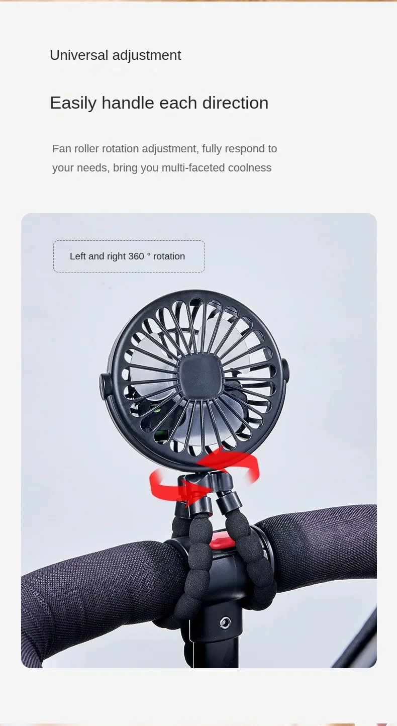 Ventiladores de cochecito de 3 velocidades para cochecito de bebé, ventilador portátil de verano para exteriores con Clip en carrito, ventilador eléctrico de mano recargable por USB para niñosMuy conveniente para adjuntar al cochecito.