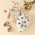 Comprar Verano algodón bebé elefante letra manga larga triángulo caqui arco pantalones largos primavera otoño top mariposa elefante pantalones largos