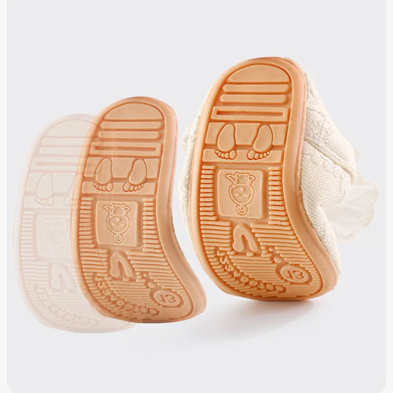 4.**Diseño antideslizante**: La suela tiene un patrón antideslizante, que ofrece estabilidad y seguridad a medida que su bebé comienza a explorar y dar sus primeros pasos.
