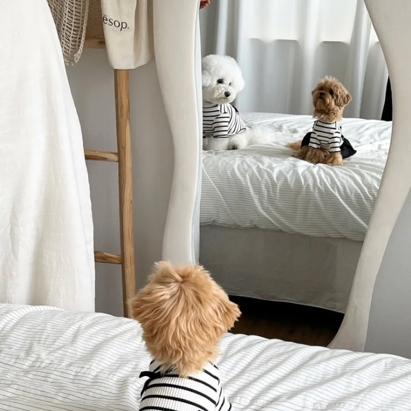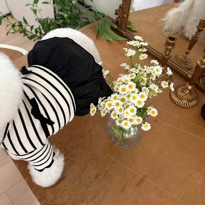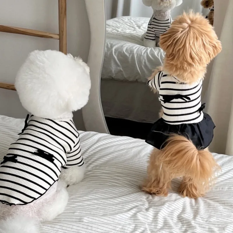 Verano mascota arco cachorro camisa Collar Correa moda manga voladora vestido para perro a rayas vestido blanco negro Teddy para ropa para perros pequeños