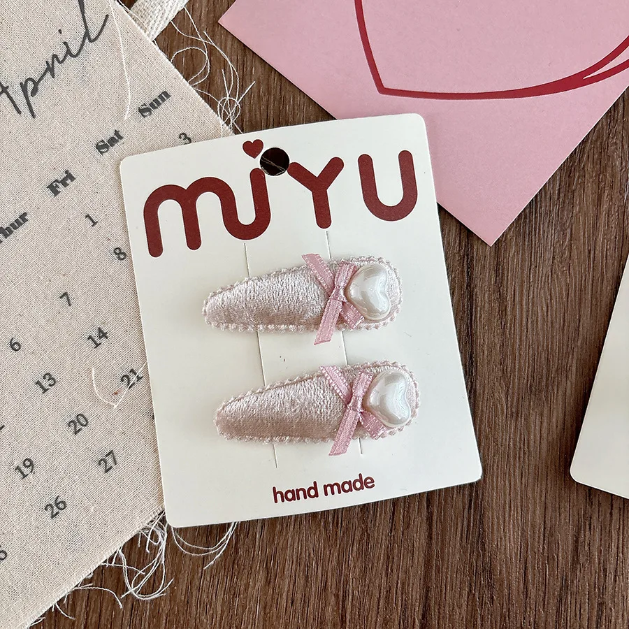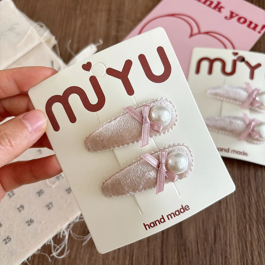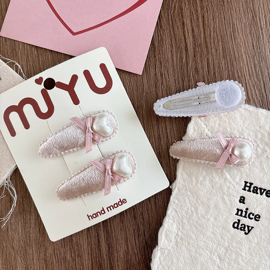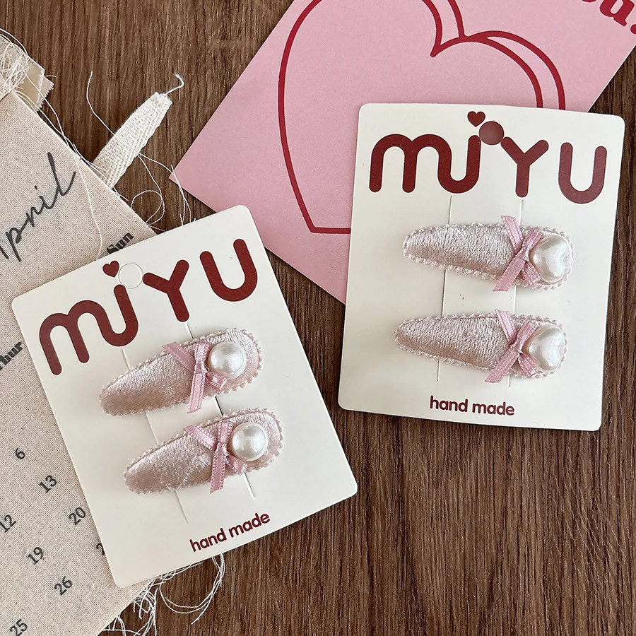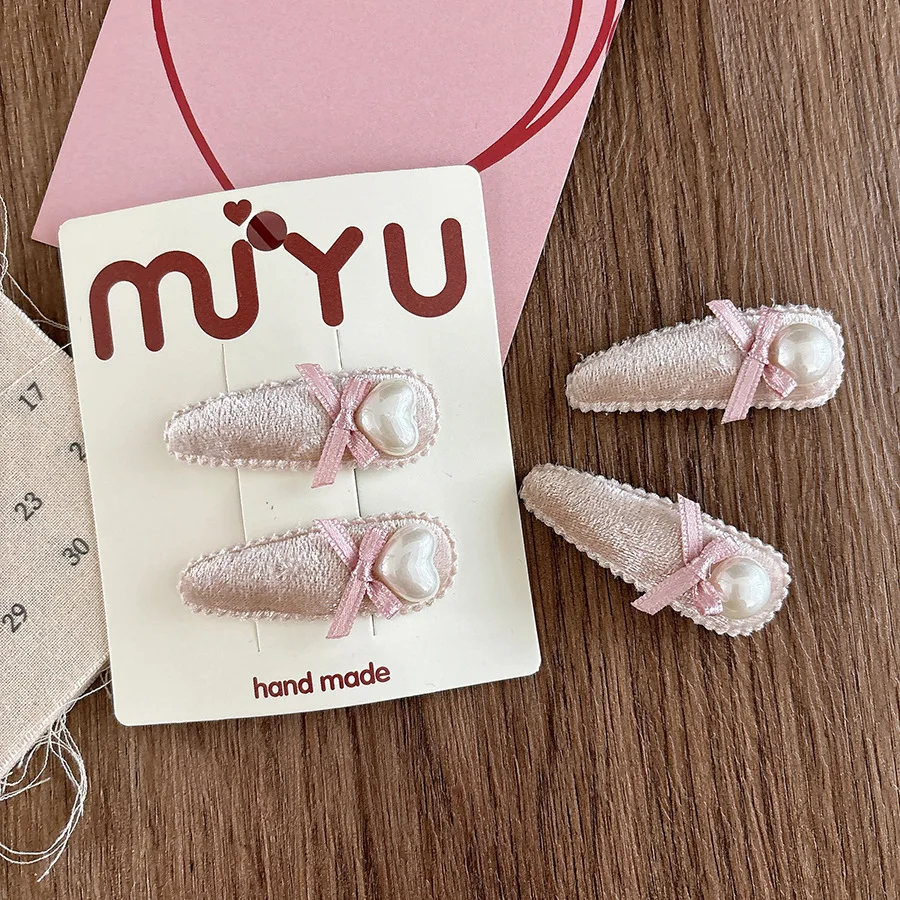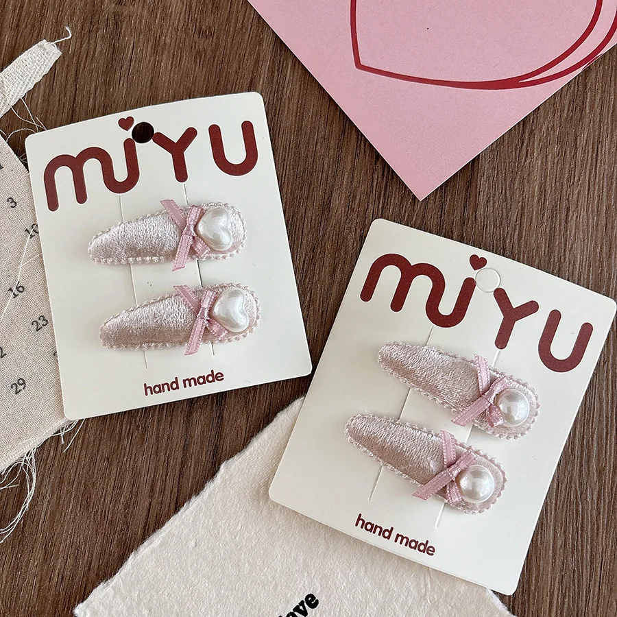Versión coreana de terciopelo rosa, agradable arco de perlas, gota de agua para niños, Clip Bb, flequillo lateral, horquilla versátil para niñas