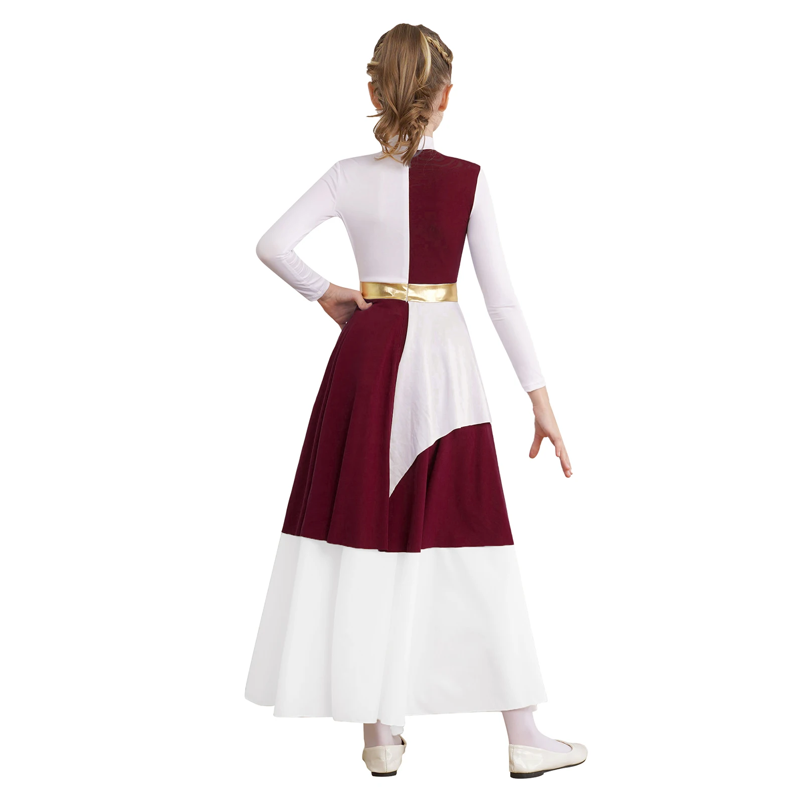 Comprar Vestido de baile para niña, ropa de baile para actuación en escenario, bata de cuello simulado para iglesia, traje litúrgico de baile lírico moderno