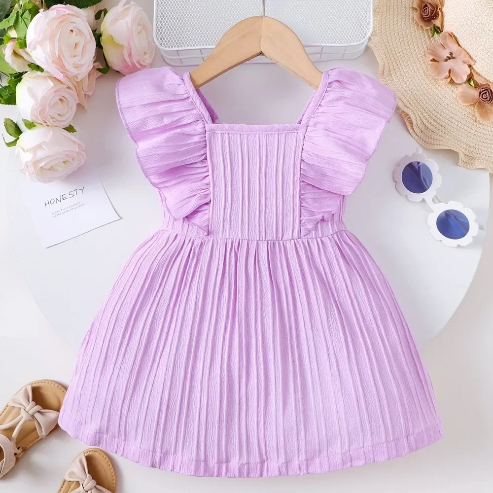 Comprar Vestido para bebé niña de 3 a 24 meses, tela plegable, manga aleteo, diseño de botones, ropa de verano, ropa infantil para bebé