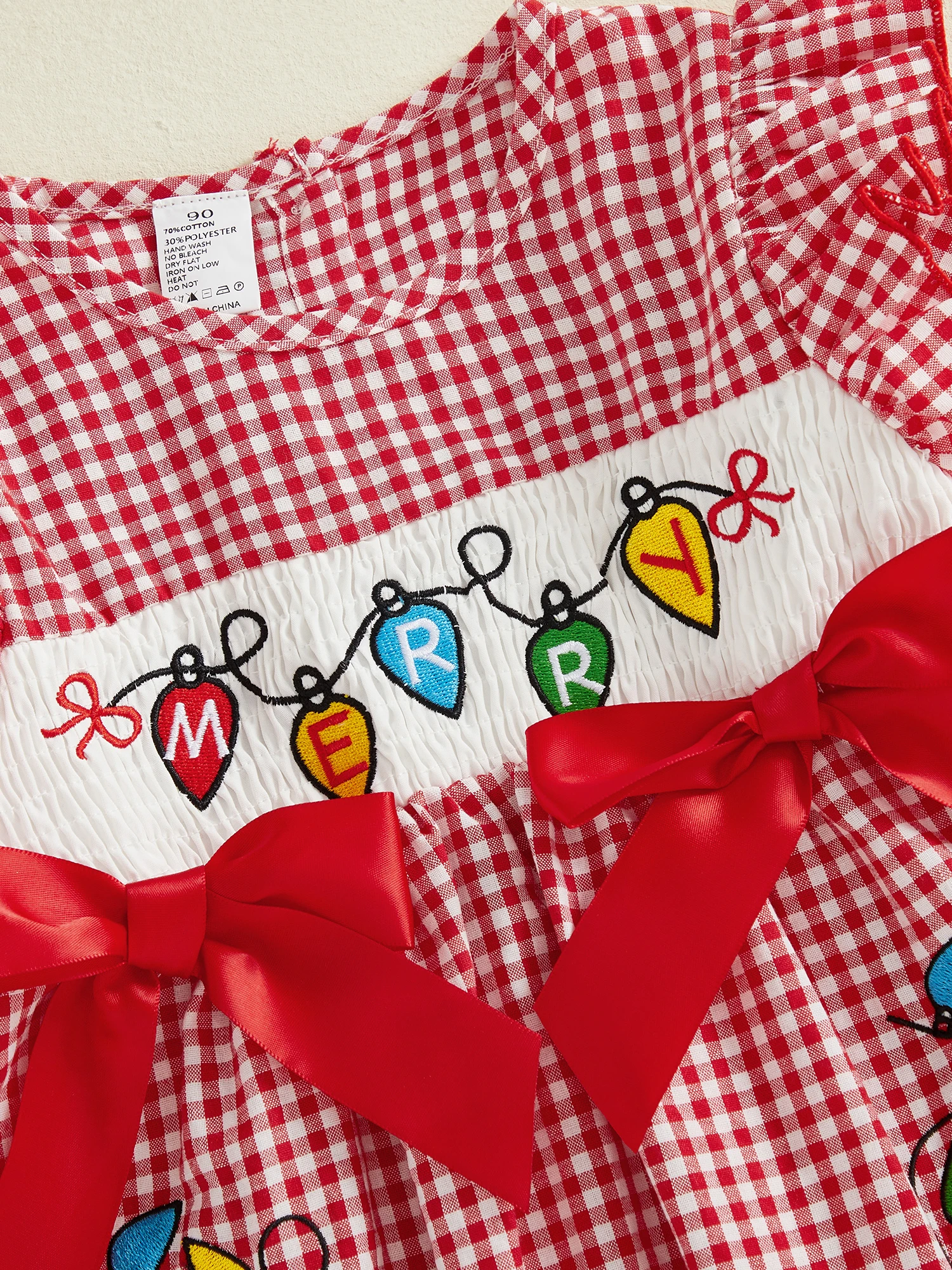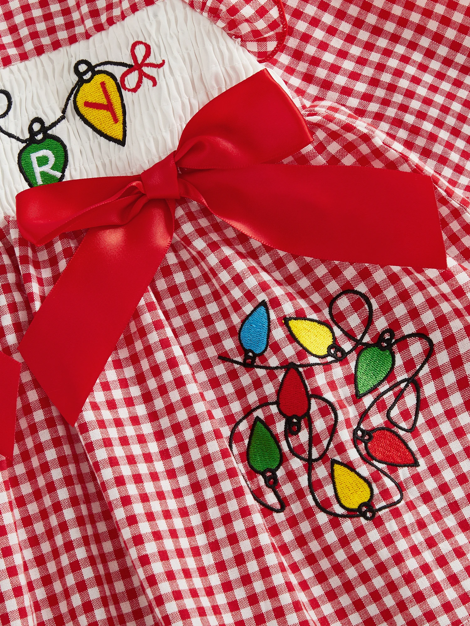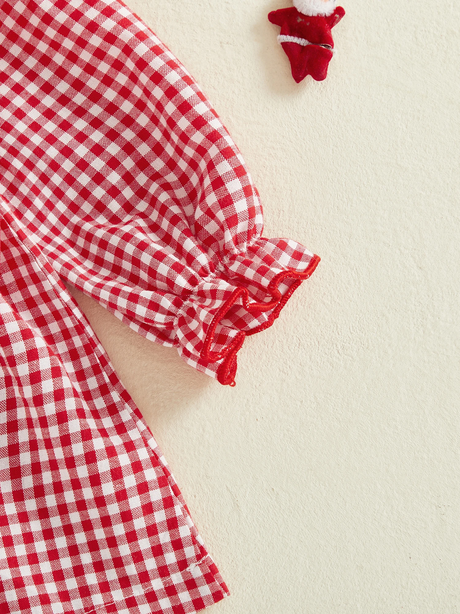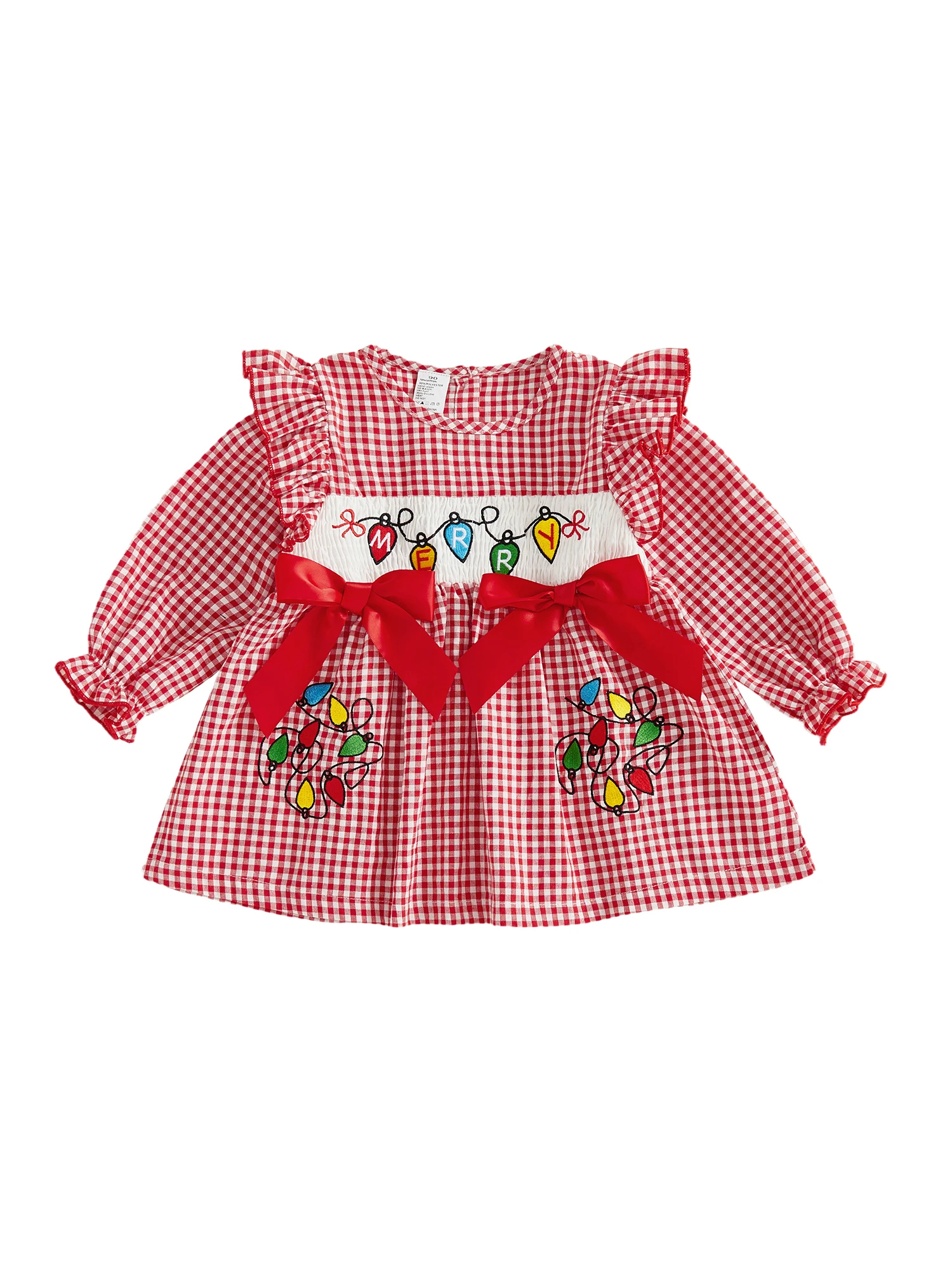 Vestido casual para niñas, manga larga, cuello redondo, bordado a cuadros, otoño, vestido de línea A, disfraz de Navidad