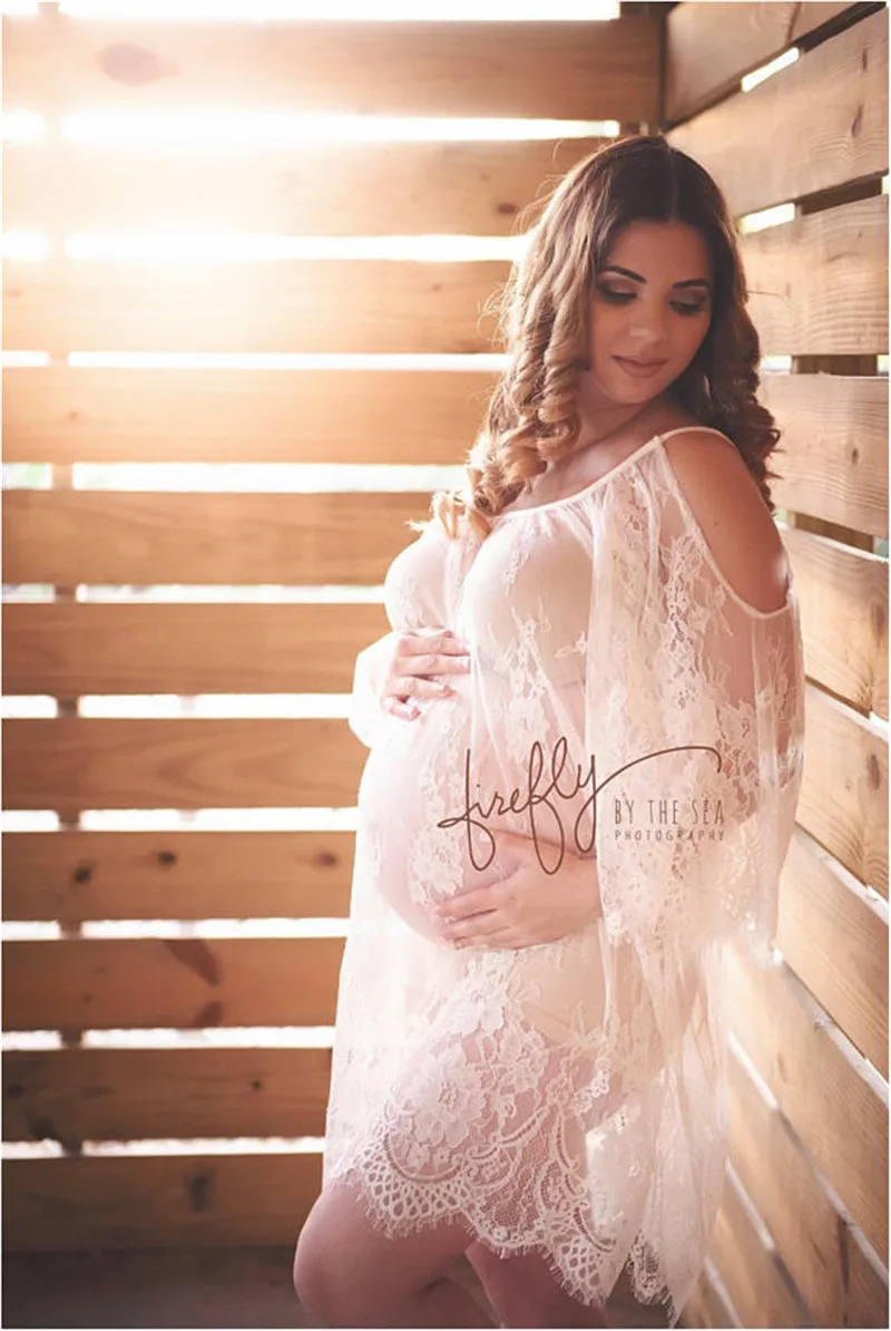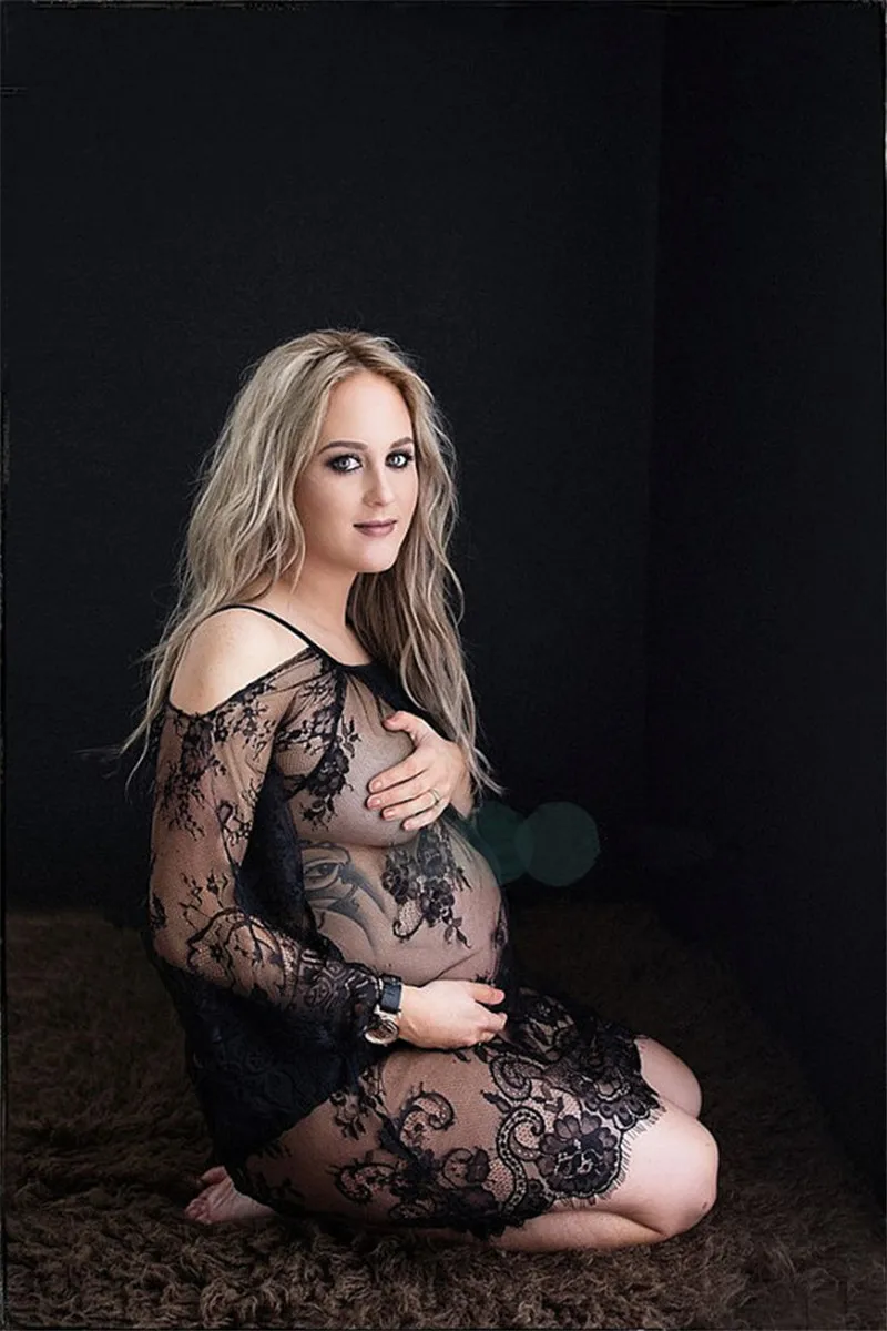 Vestido corto de encaje transparente para sesión de fotos, ropa de maternidad con tirantes, para sesión de fotos del embarazo