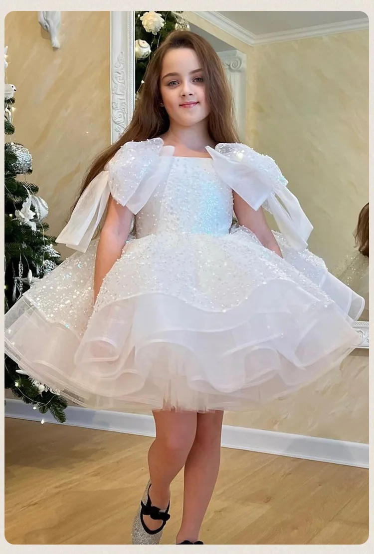 Vestido de cumpleaños para niñas pequeñas, vestidos de tutú con volantes de tul con corazón brillante, sesión de fotos para fiesta de té, 4-10T