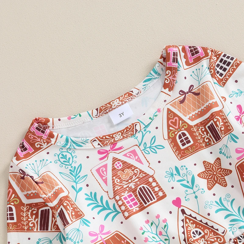 Comprar Vestido de disfraz de Navidad para niña, estampado de pastel de dibujos animados, manga larga, cuello redondo, línea A, vestido en capas