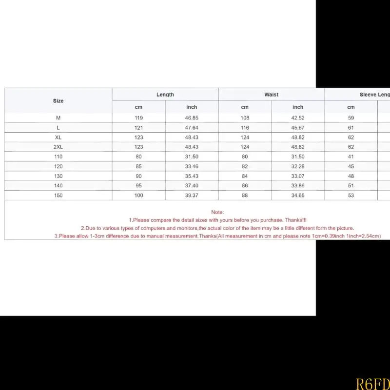 Tamaño: 140 Longitud: 95 cm (37,40 pulgadas) Cintura: 86 cm (33,86 pulgadas) Longitud de la manga: 51 cm (20.08 pulgadas)