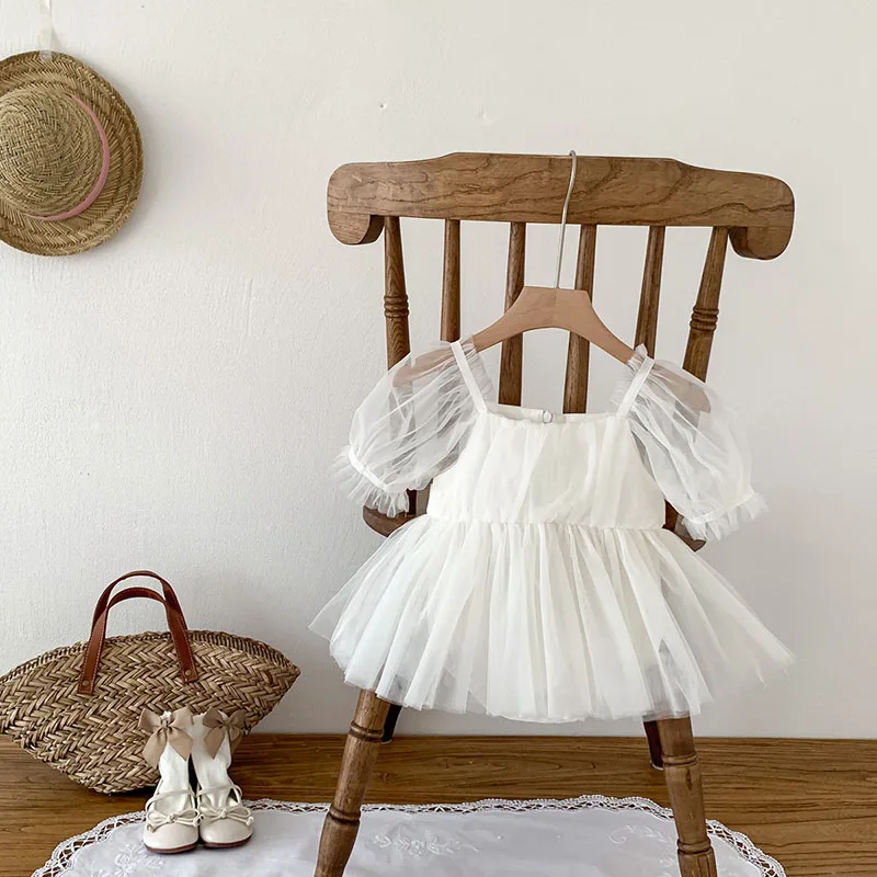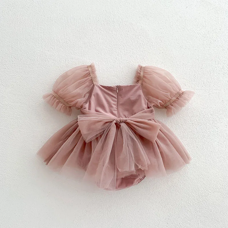 Comprar Vestido de encaje con lazo grande para bebé, body infantil de malla de manga corta, trajes de princesa, novedad de verano
