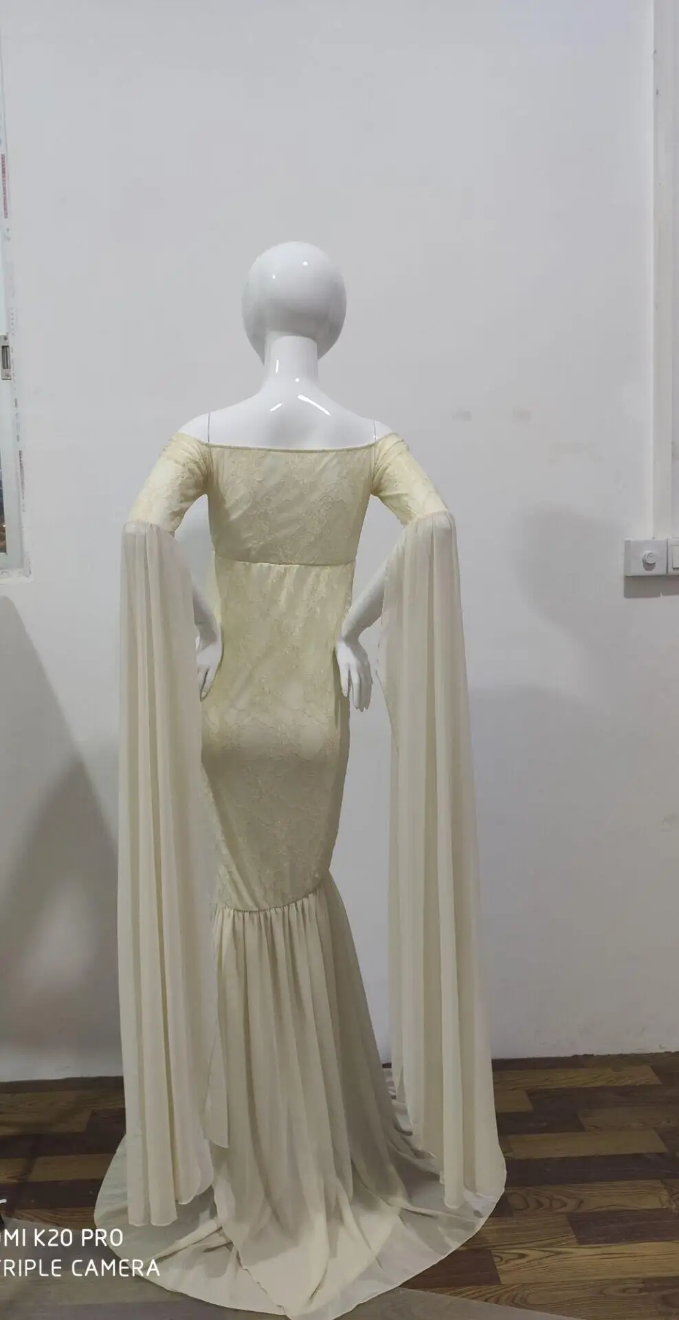 Comprar Vestido de encaje sin hombros para Sesión de embarazo, maxivestido de maternidad para fotografía, utilería para fotos