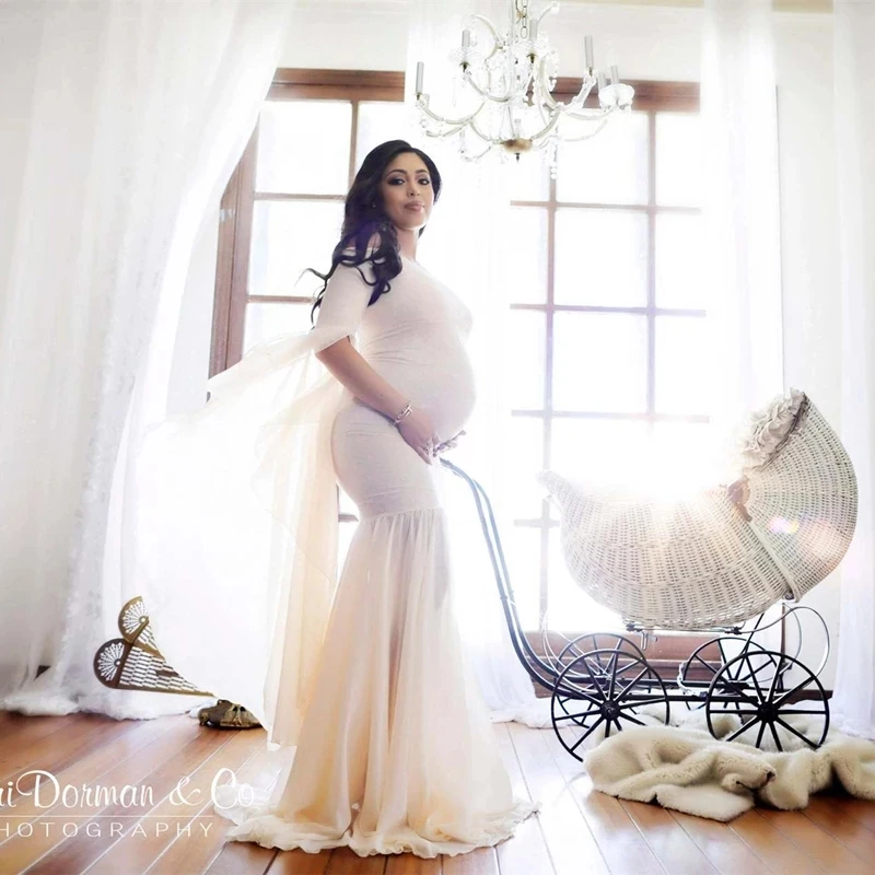 Vestido de maternidad sin hombros para sesión de fotos, vestido de fotografía de embarazo elegante de encaje, maxivestido de maternidad para mujeres embarazadas, utilería para fotos