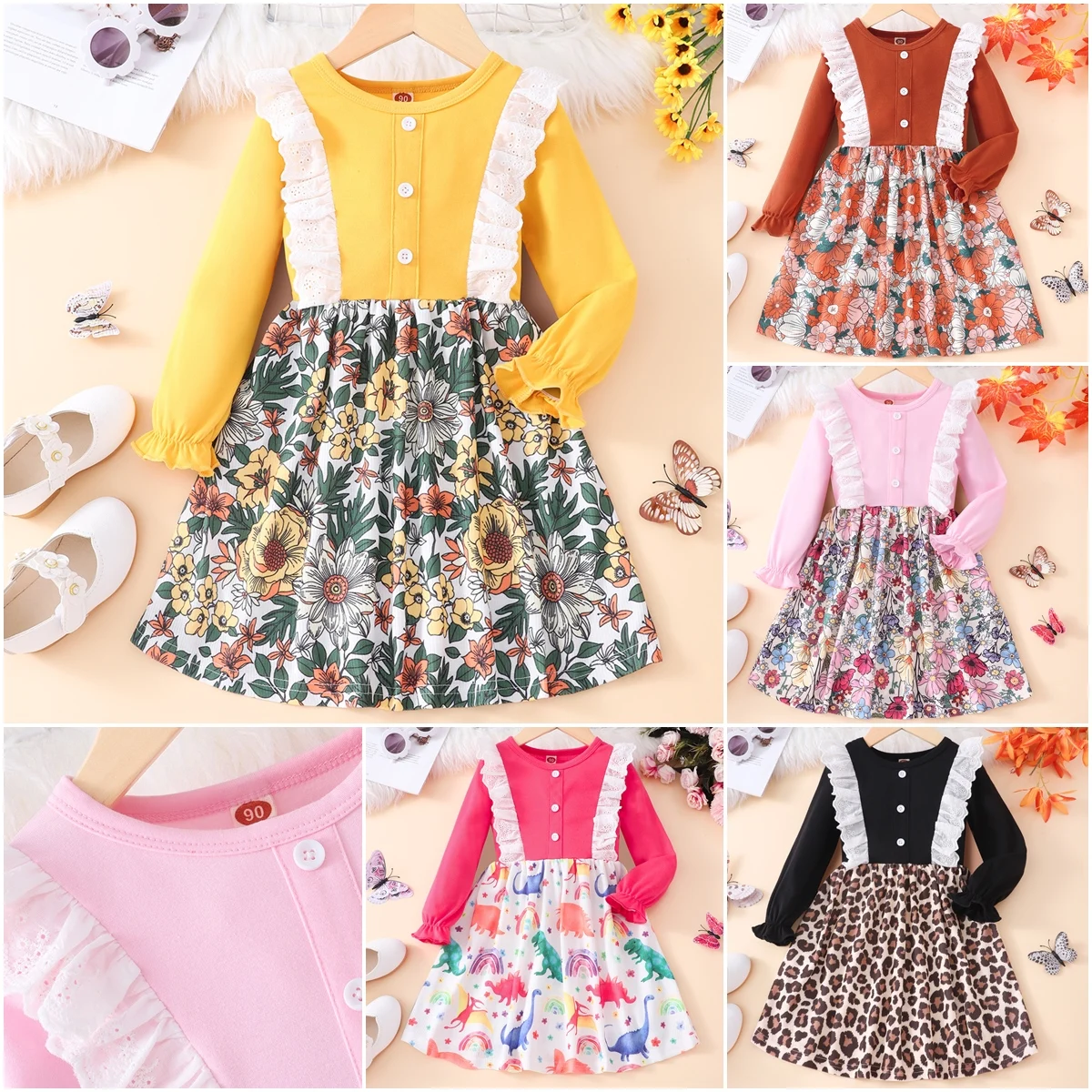 Comprar Vestido con estampado de encaje para niña, ropa de manga larga para primavera y verano, bonito vestido de princesa para fiesta, 2, 3, 4, 5, 6 años, 2024