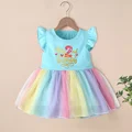 Comprar Vestido con estampado de letras doradas para bebé de 1, 2, 3 y 4 años, vestido de arcoíris para cumpleaños, vestidos de verano de algodón para fiesta infantil, ropa