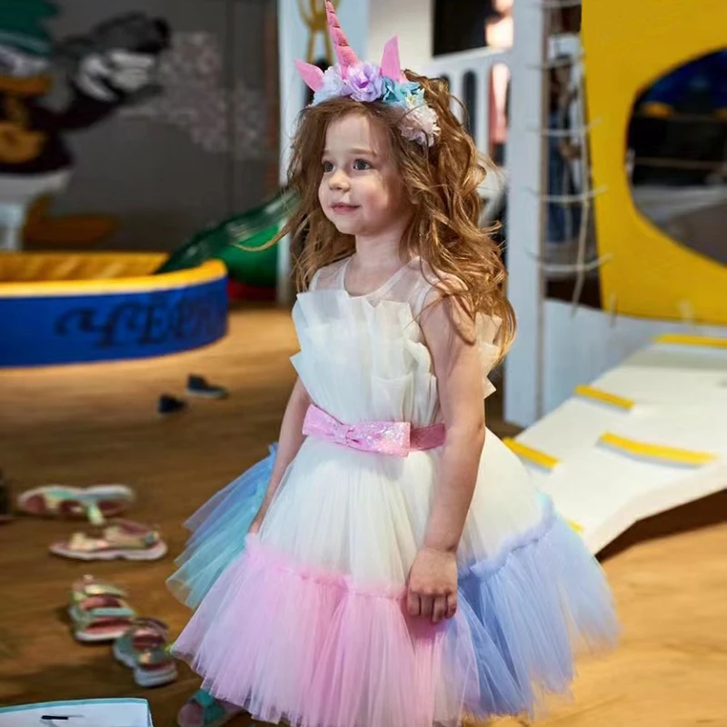 Comprar Vestido de fiesta colorido para niños, traje de princesa de encaje, ropa para niñas, vestido de boda sin espalda, 3 a 10 años