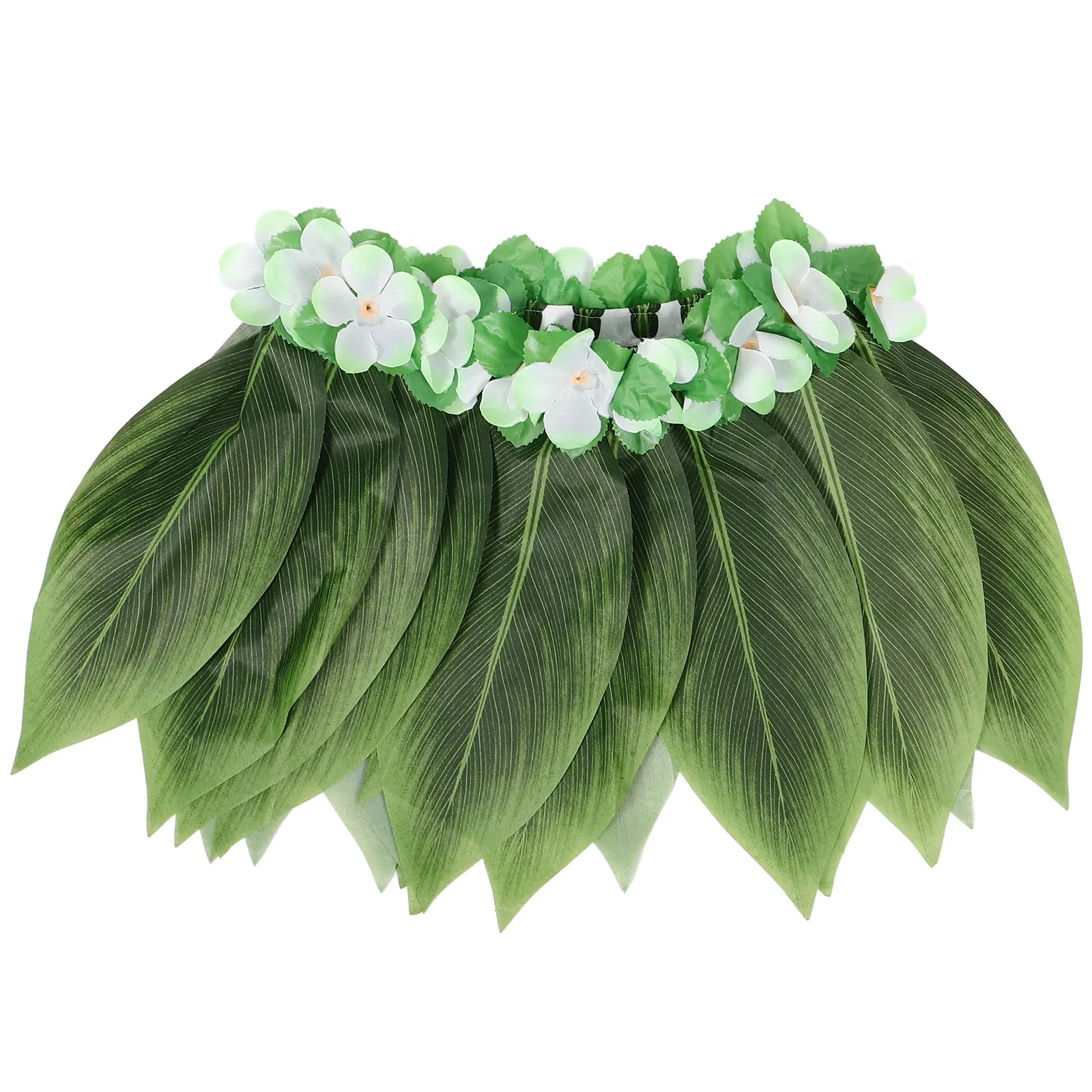 - Falda de hojas Cintura de 30 pulgadas * 15 pulgadas de largo (talla adulta), hoja tejida cosida en una cintura elástica verde con flores artificiales, cintura ajustable que te hace sentir seguro y cómodo.Falda de hierba verde