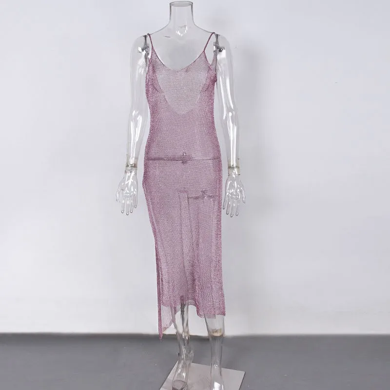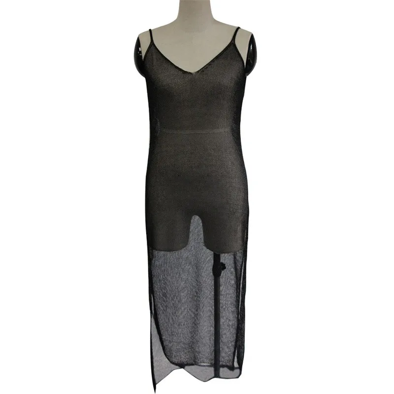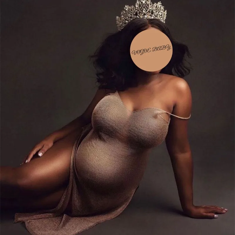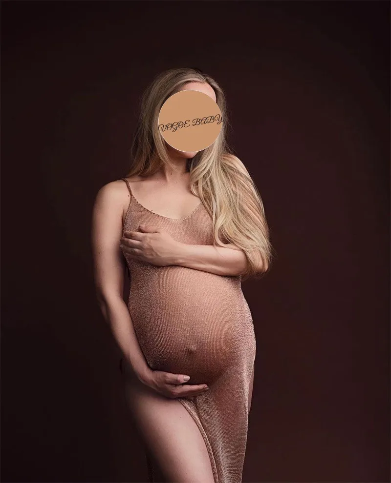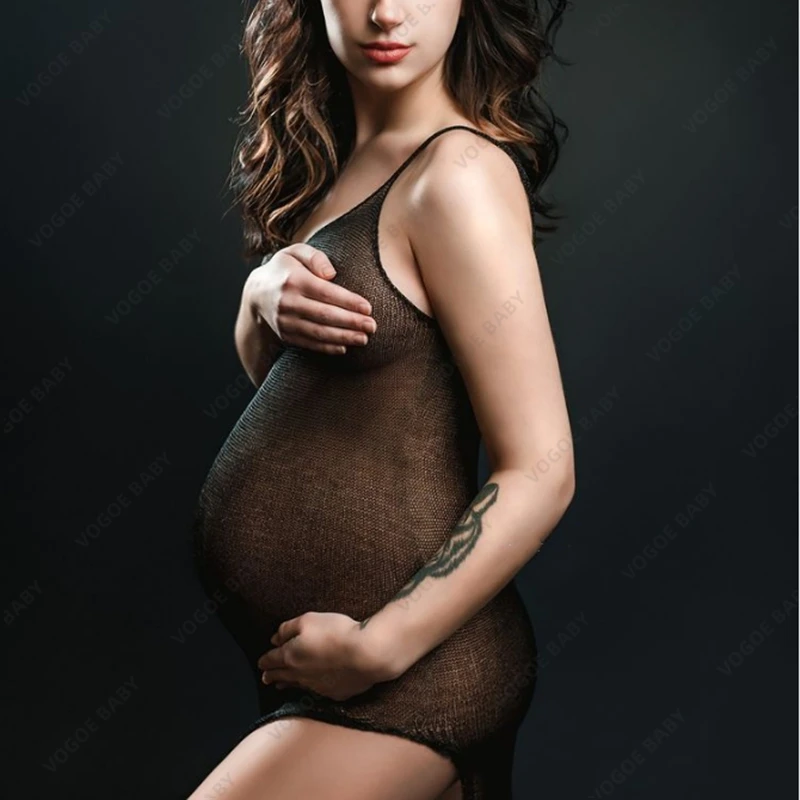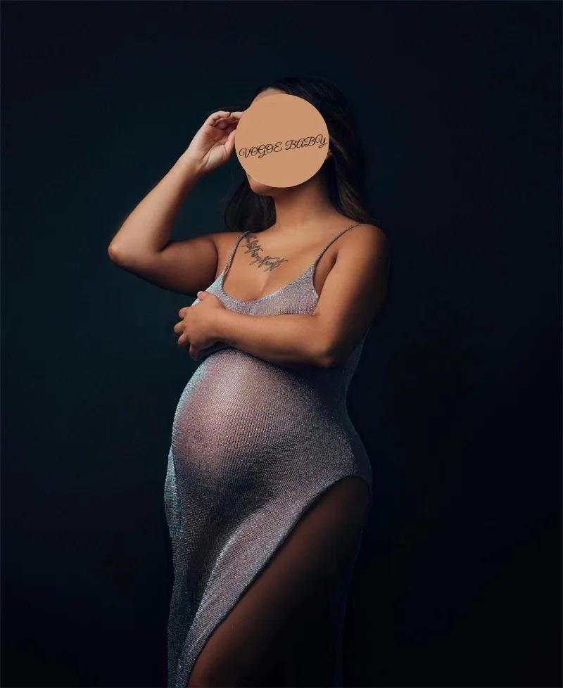 Vestido de fotografía de maternidad protector solar malla cristal Bikini cubrir embarazo cuello en V hendidura vestido con tirantes vestidos de punto Sexy