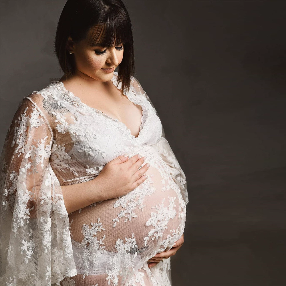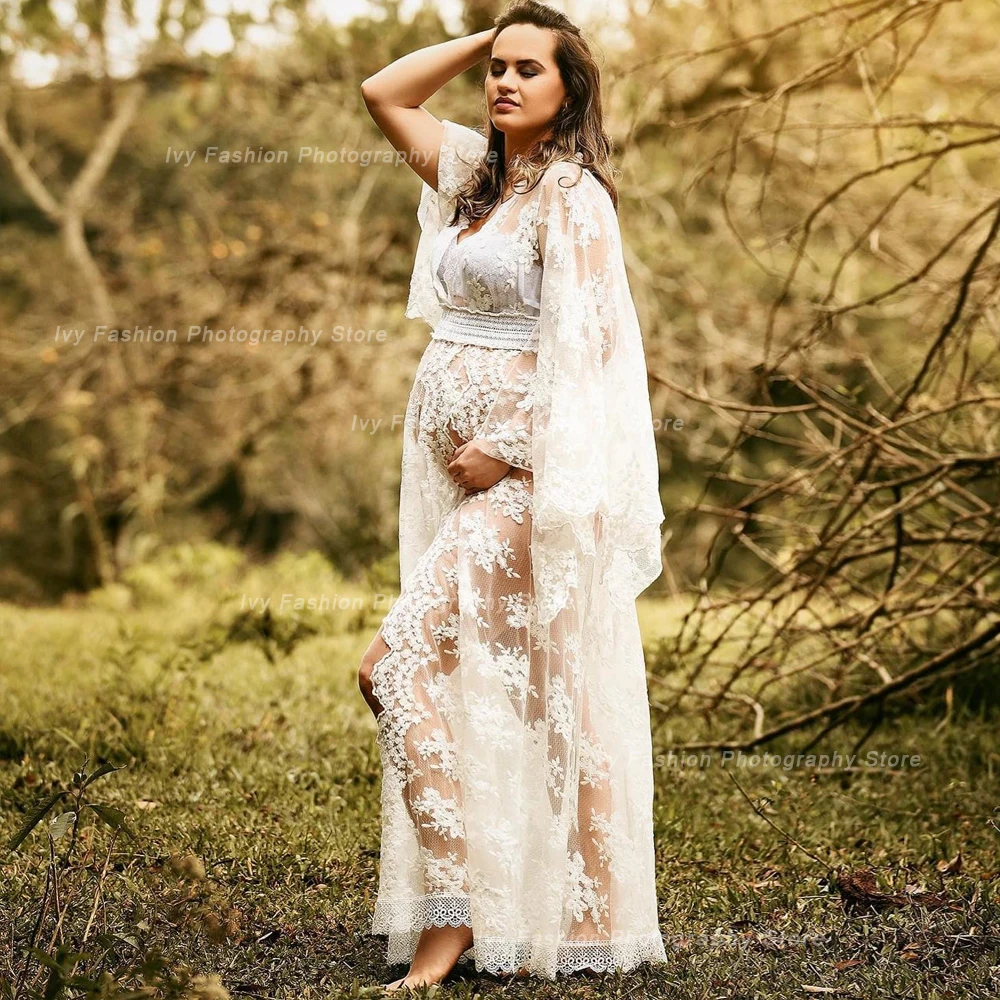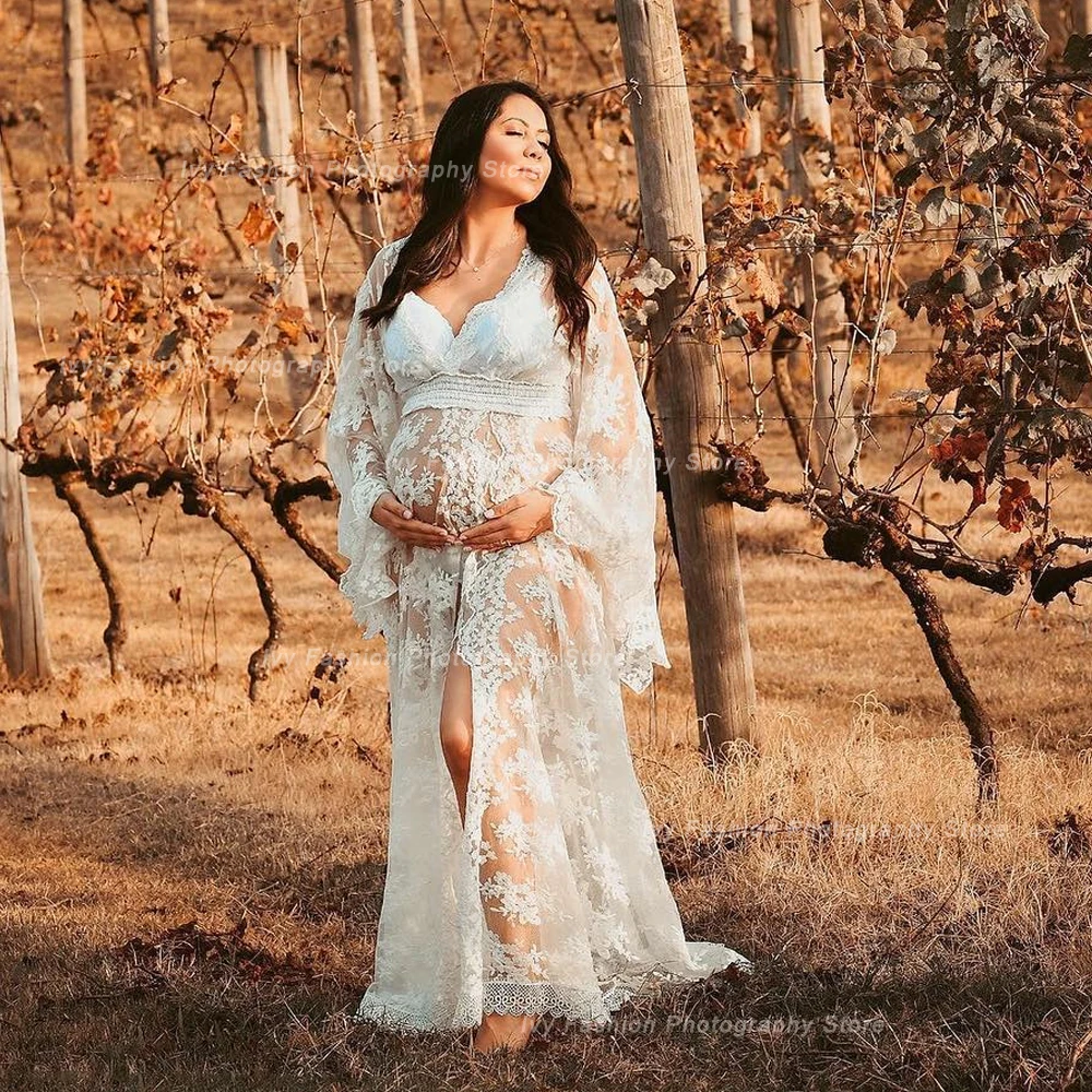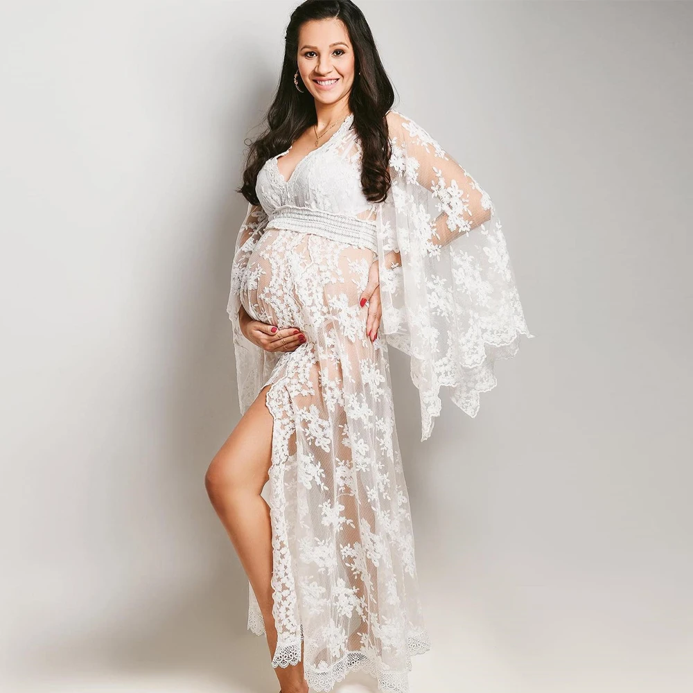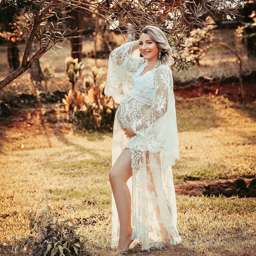 Vestido de fotografía de maternidad, vestido largo de encaje bordado con flores, vestido de estilo bohemio para mujeres embarazadas, bata para sesión de fotos grossesa