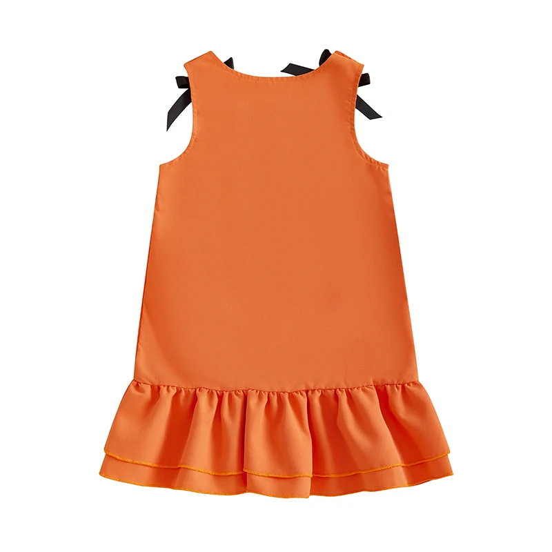 Vestido de Halloween para niña pequeña, sin mangas, cuello redondo, bordado de calabaza, vestido de vacaciones para bebé