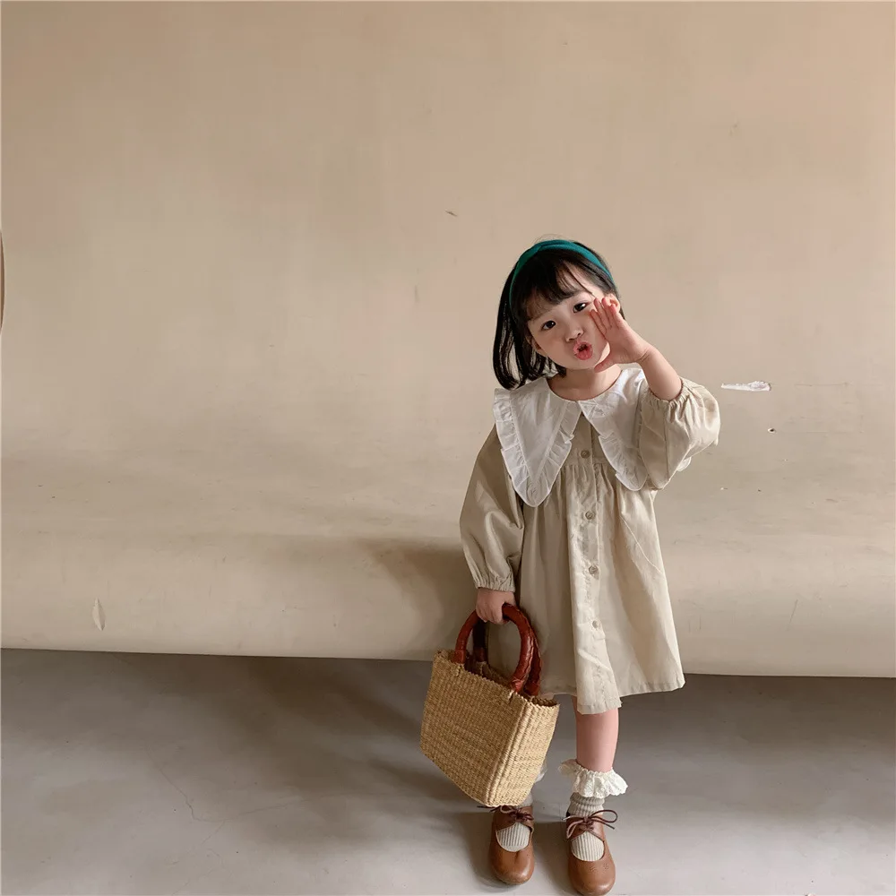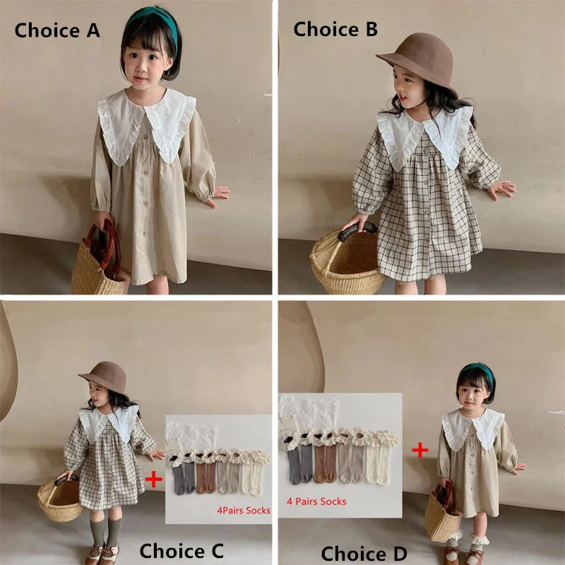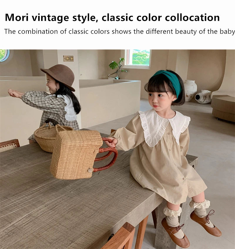 Comprar Vestido informal a cuadros para niñas pequeñas, ropa de princesa de lino y algodón coreano, cuello vuelto grande, novedad de verano