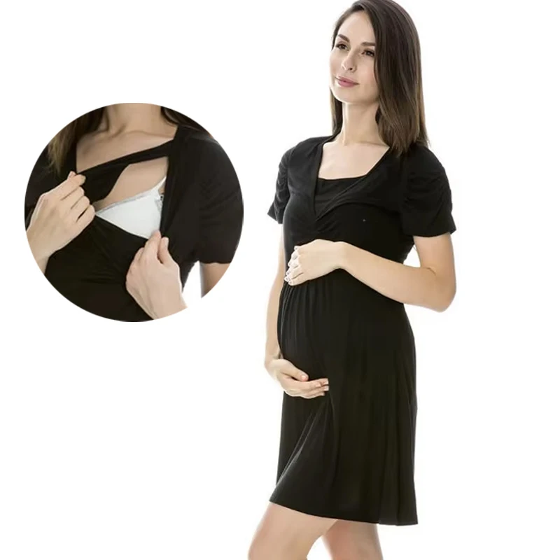 Comprar Vestido de lactancia, ropa de maternidad de verano, vestido acampanado hasta la rodilla para mujeres embarazadas, vestidos de lactancia