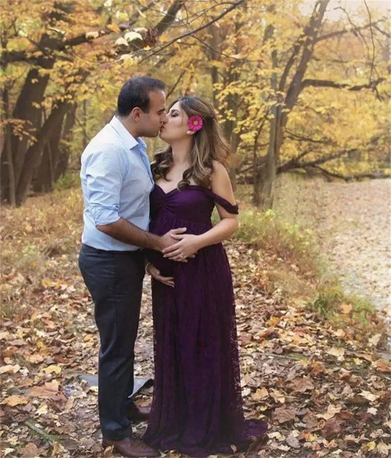 Comprar Vestido largo de encaje para fotografía de embarazada, maxivestido de maternidad para sesión de fotos