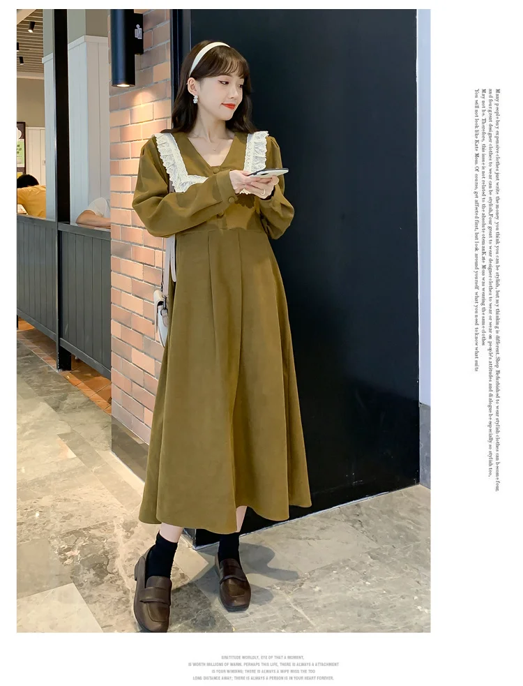 Vestido largo de maternidad para mujeres embarazadas, ropa elegante de moda coreana para otoño e invierno, línea A, holgada, para fiesta de embarazo, 1915