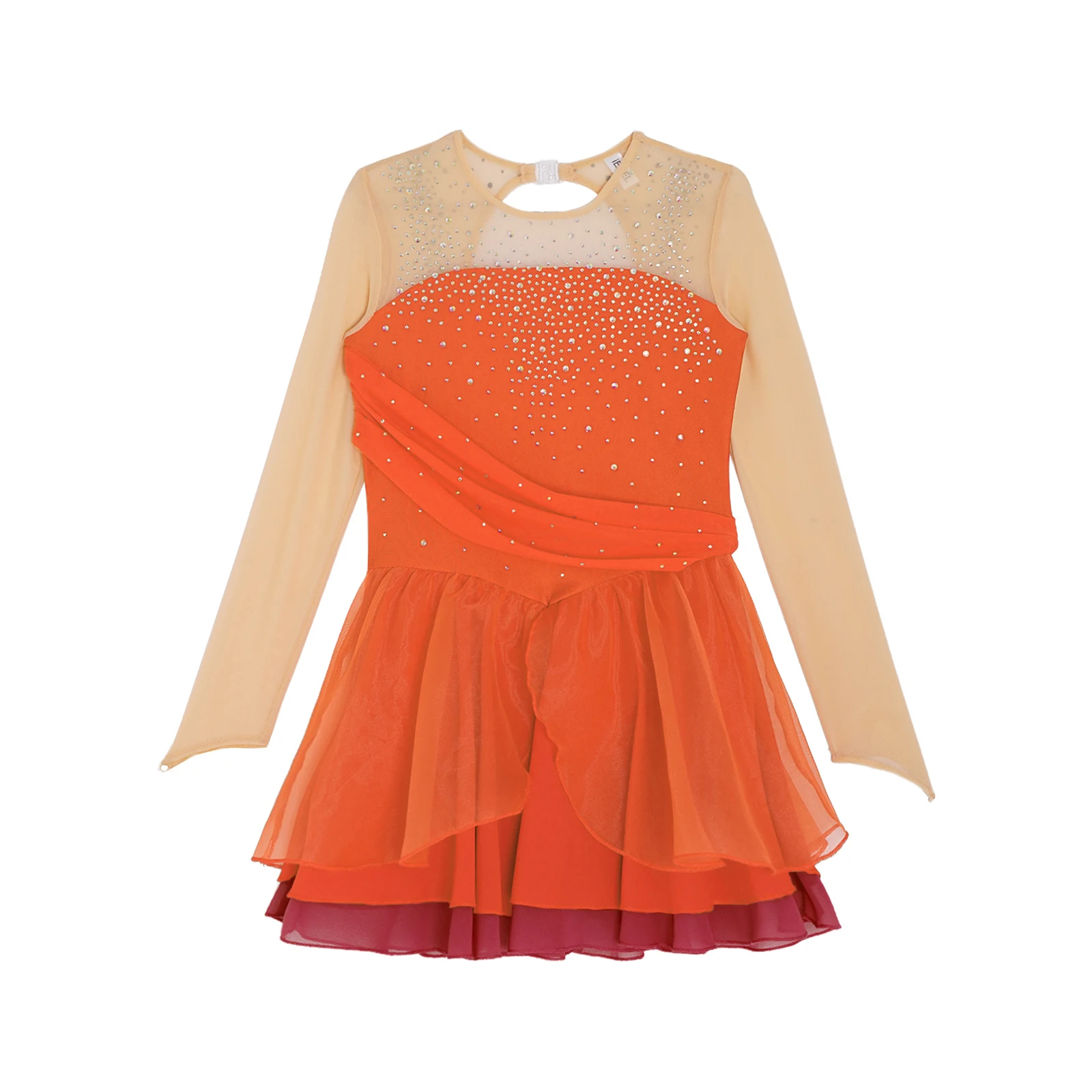 Comprar Vestido de leotardo de patinaje artístico para niñas, vestidos de gimnasia y danza lírica con diamantes de imitación, Ropa de baile de Ballet con espalda recortada de manga larga