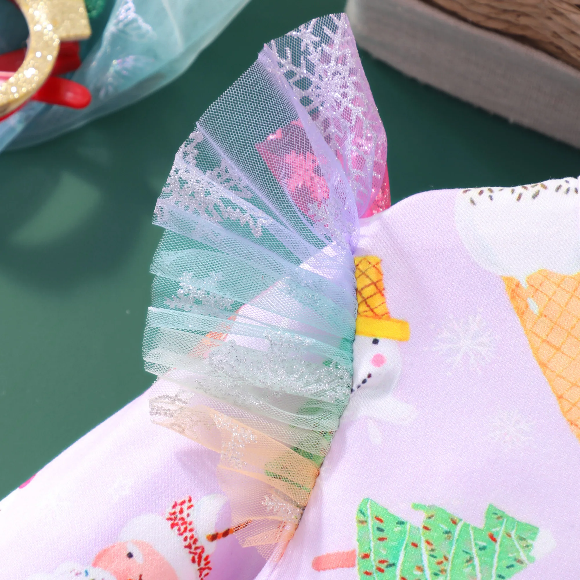 Vestido de malla de Navidad para niños y niñas, ropa de manga larga, traje de invierno para bebés, muñeco de nieve, Papá Noel, vestidos para niños de 2, 3, 4, 5, 6 y 7 años